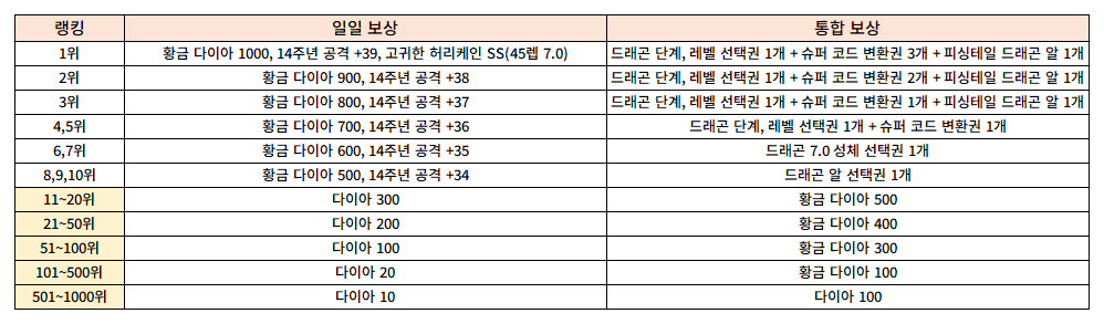 <포춘 쿠키 점수 랭킹 보상>
