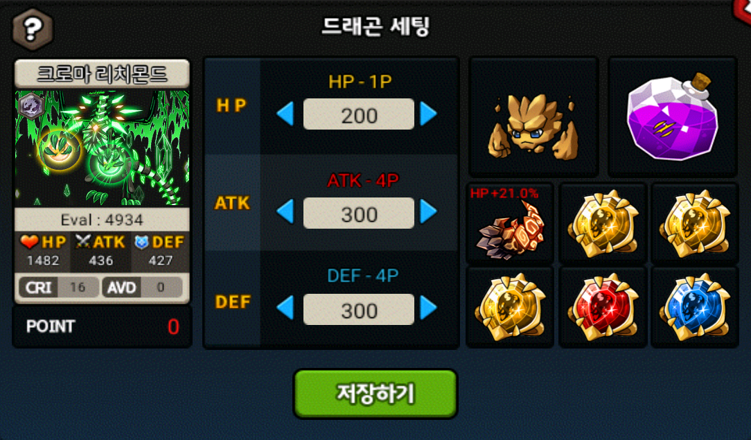 - 주어진 드래곤과 포인트를 사용하여 HP, ATK, DEF를 설정합니다.