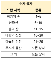* 10상자 사용 시 획득 가능한 숫자 : 6, 7, 8, 9, 10