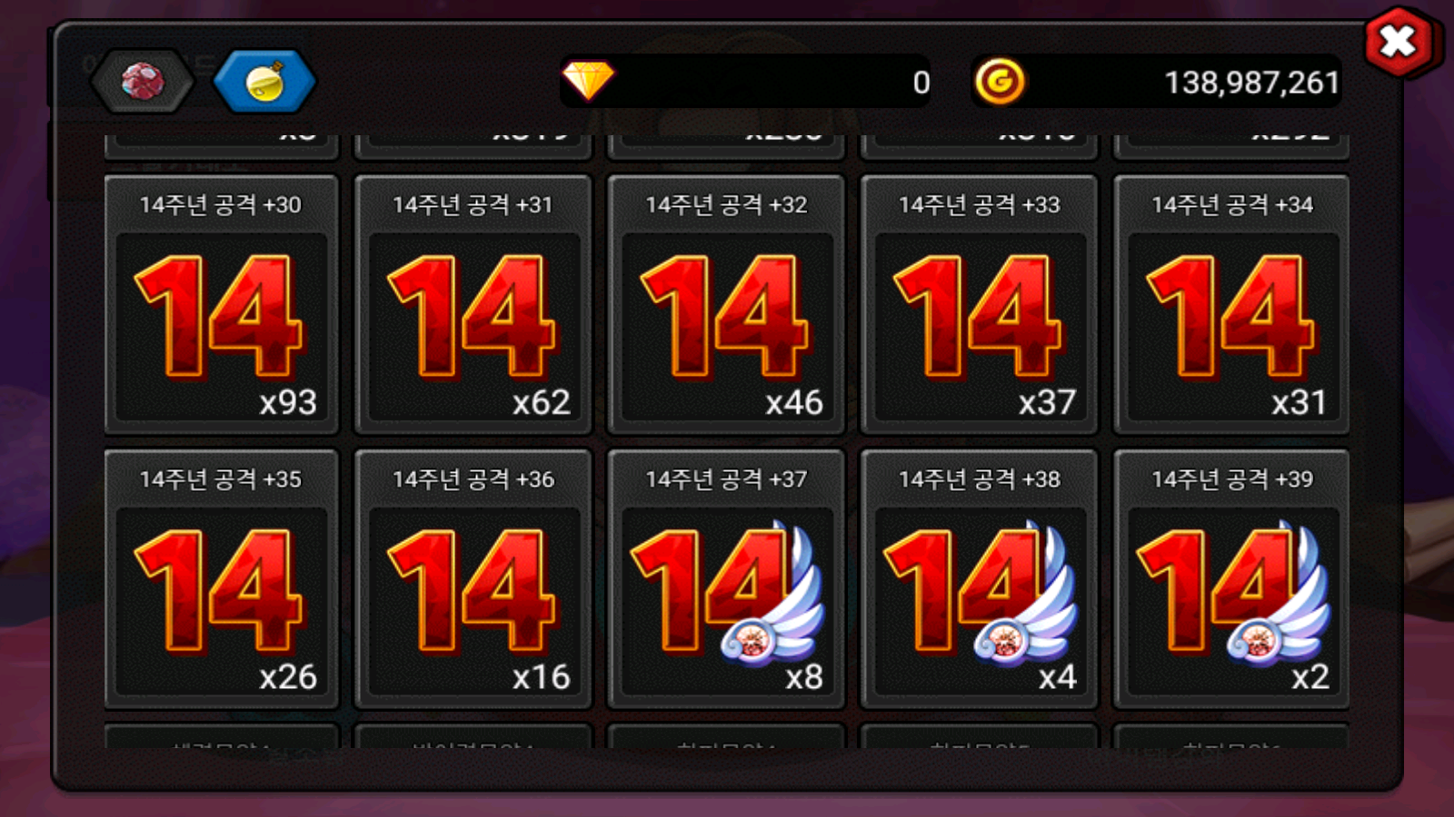 * 초기화 시, 숫자 상자의 수량에 따라 개당 1,000골드의 보상으로 지급됩니다.