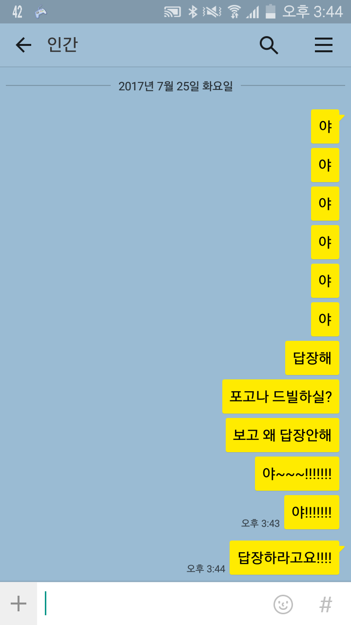 카인:으워어...심심해..방학했는데..친구한테 카톡보내야지..