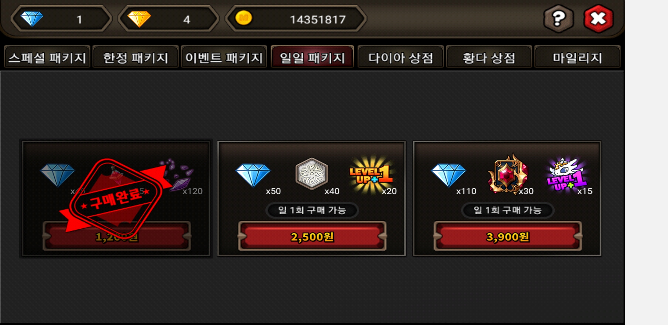 일일패키지를 샀는데 보상이 안들어오네요...뭘까요