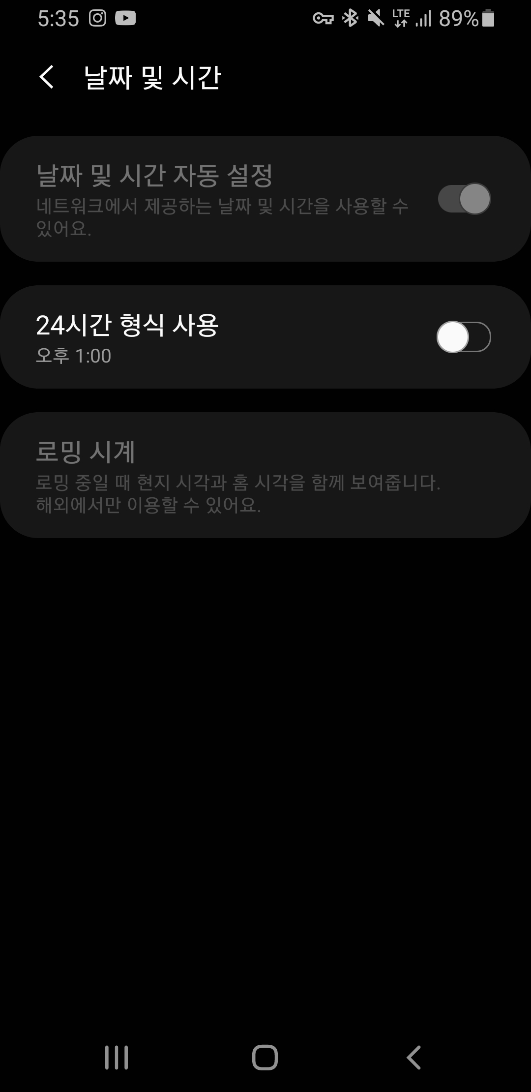 시간 자동설정이 잠겨있는데 어떻게 해야 풀리나요?