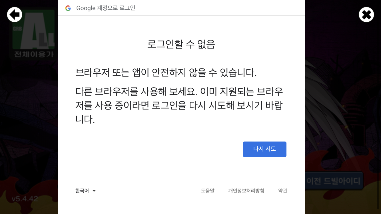 구글 로그인 오류