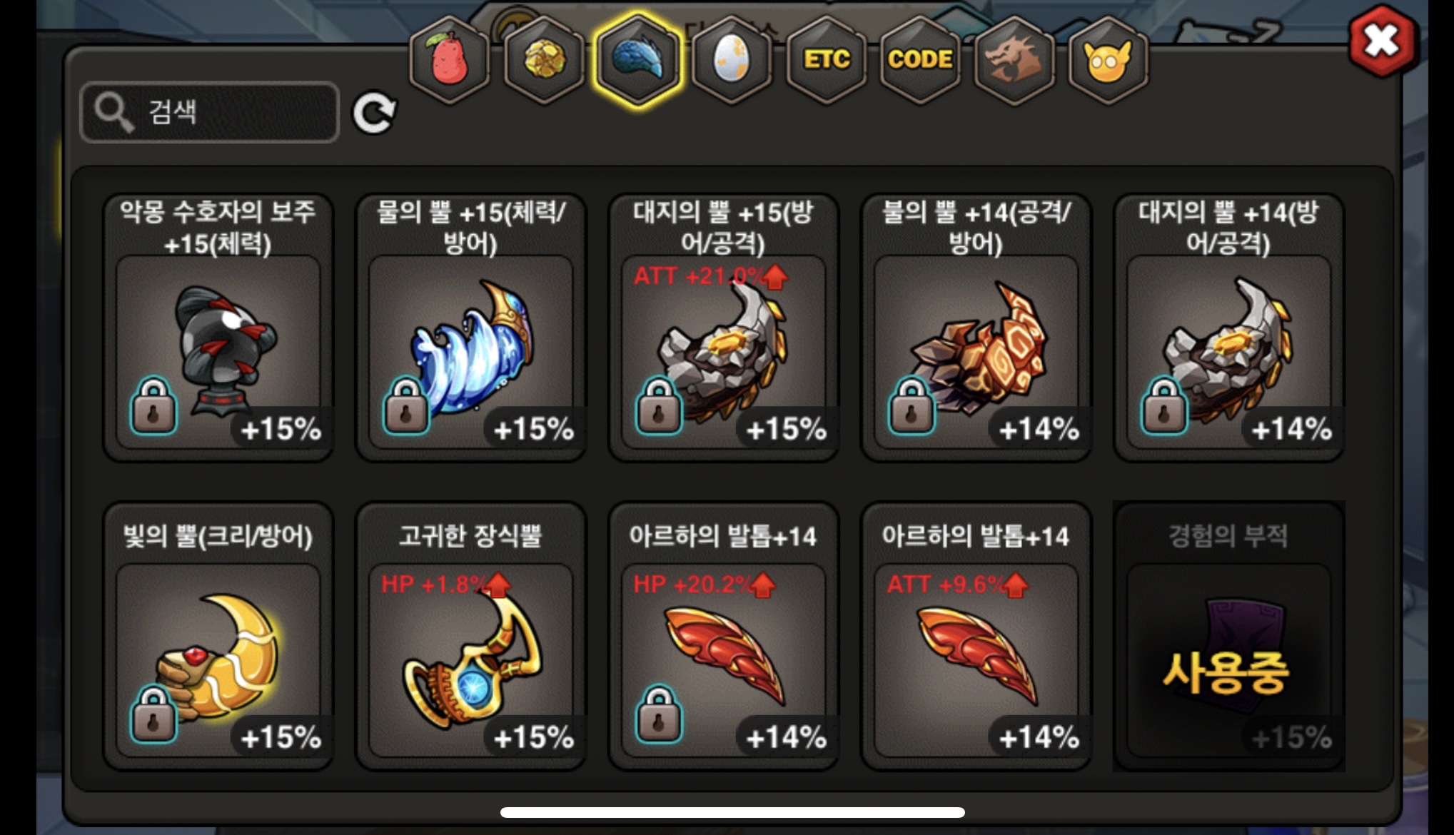 1. 보주 +15 (체력)