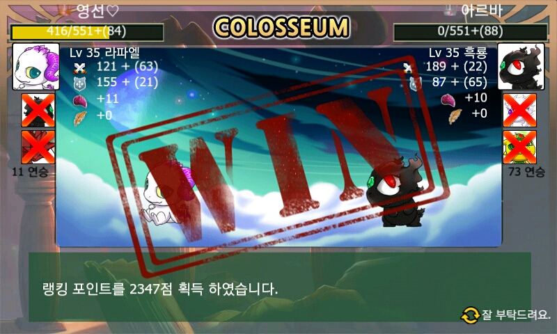 배경버프+상성이합치면 엄청난 데미지가 ㅎㄷㄷㄷ 최대 513까지 나오더군요...