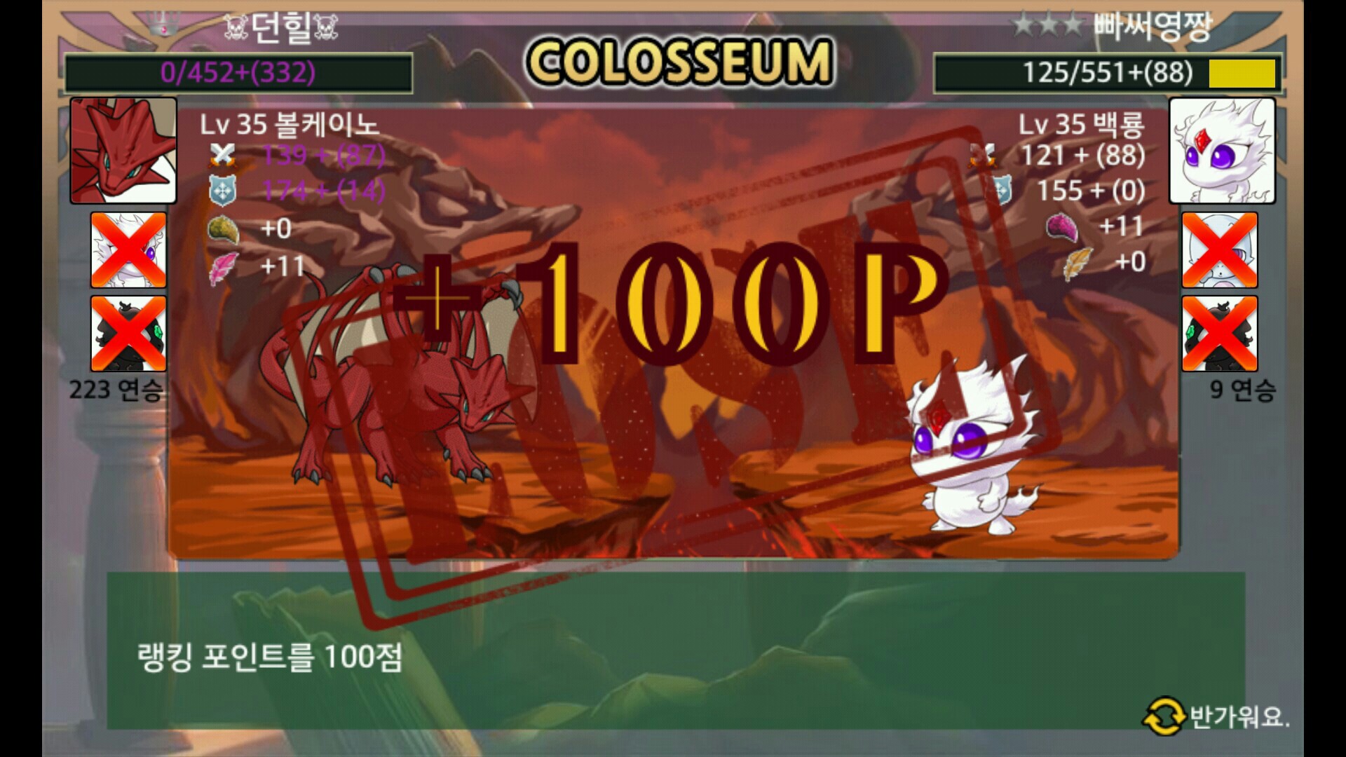 막판 더블버프받아서.. 볼케가 백룡 기본댐지2배를 초월했는데.. 4연크리.. 쩝....