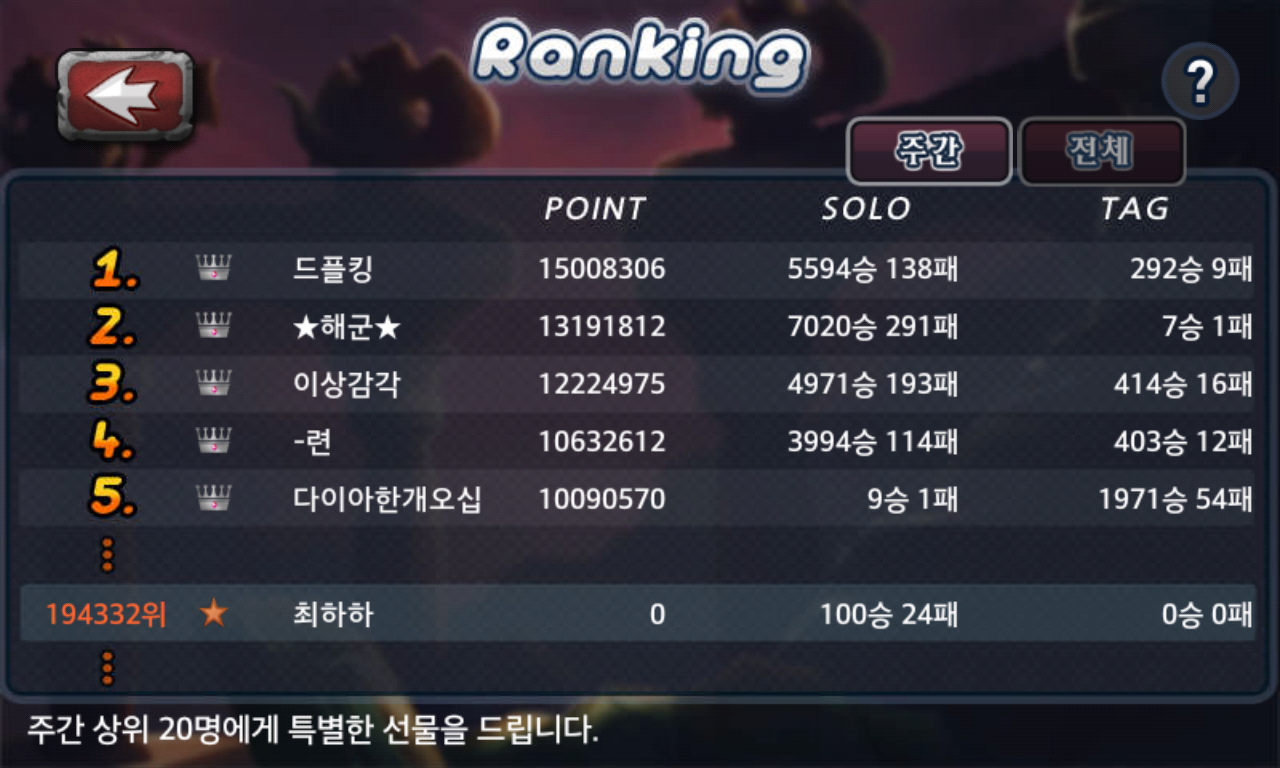 이거 오류인가요??? 이겨도 랭킹포인트가....