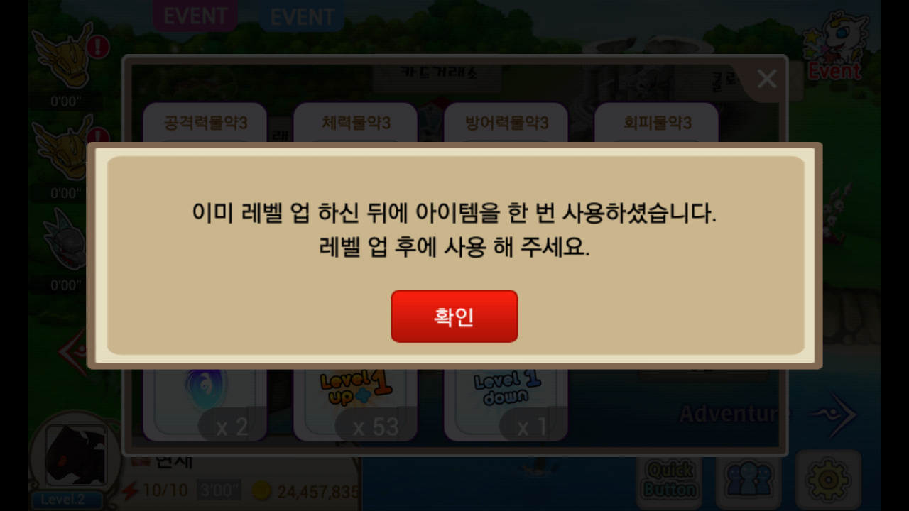 한번에 래벨업 2번하지도 안았는대 이미썻다고뜨내요 오류인가요..?? 짜증나죽겠음..6.5짜린대 어떻게좀 해주세요