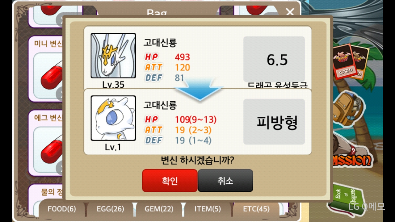 드디어6.5등급고대신룡35렙찍고캡슐만들었다!!!^0^