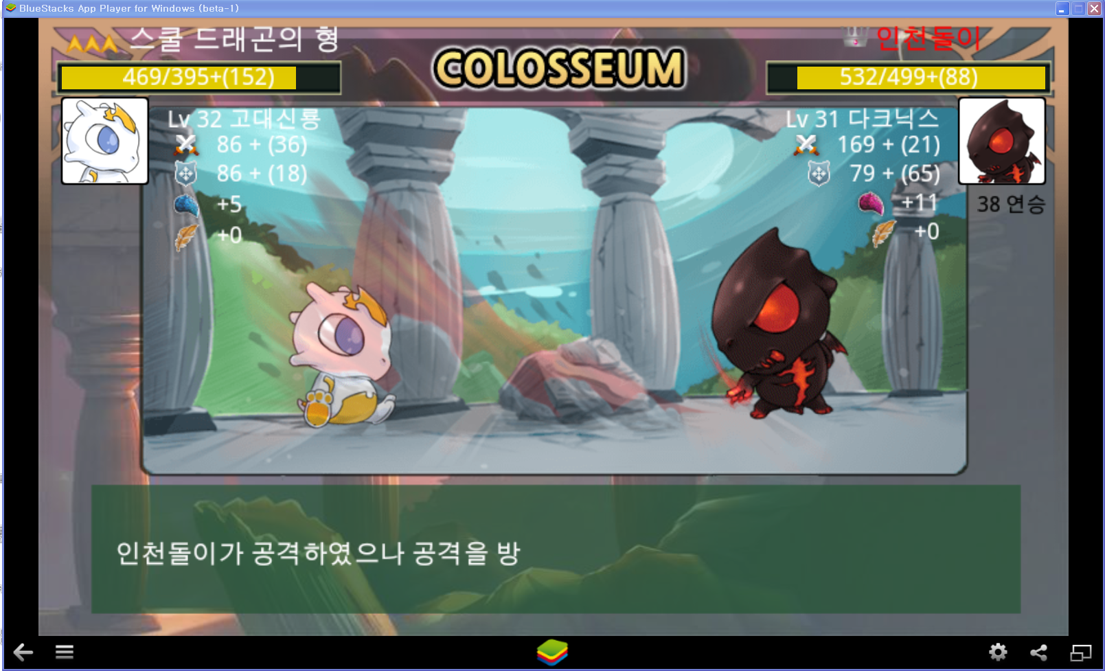 나중에 체력 100 차이로 졌어요