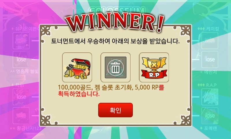 이외의 2개의 토너먼트 승리~! 사실 저 처음으로 토너먼트 우승을 해본거에요.ㅎㅎ