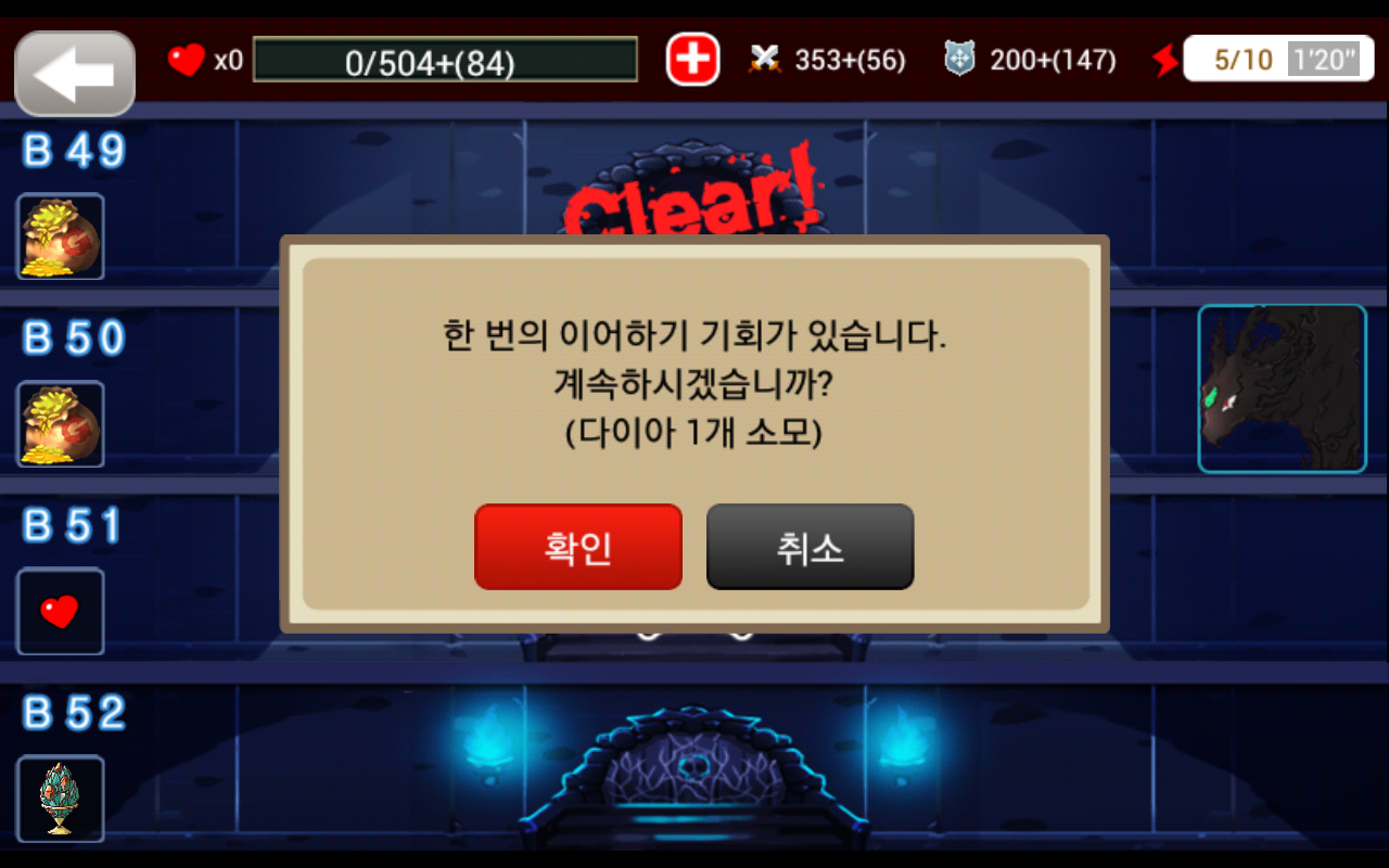 업데이트 후에는 50층을 겨우 가네요..ㅠ