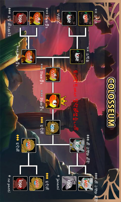 동관님은 풀캡이지만 레벨이 30이기때문에 제가이겨야하고 인천돌이님을묘미로이기고난후 묘미가대박낫네요 진짜 제가 피가좀빠지긴해시지만 공방풀캡입니다골드드래곤은 능력치가 꾀좋지만 제가훨씬더좋았는데 ㅠ ㅠ 묘미를없애자!!!!!