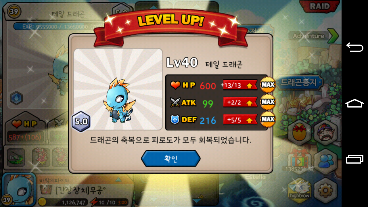 테일각 만렙&친구추가 부탁