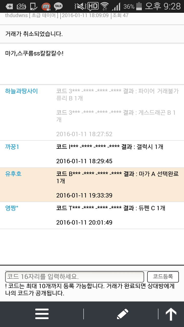 잠깐 딴거하다 확인하니 마가a는가져가고 거래취소네요 ㅋㅋ