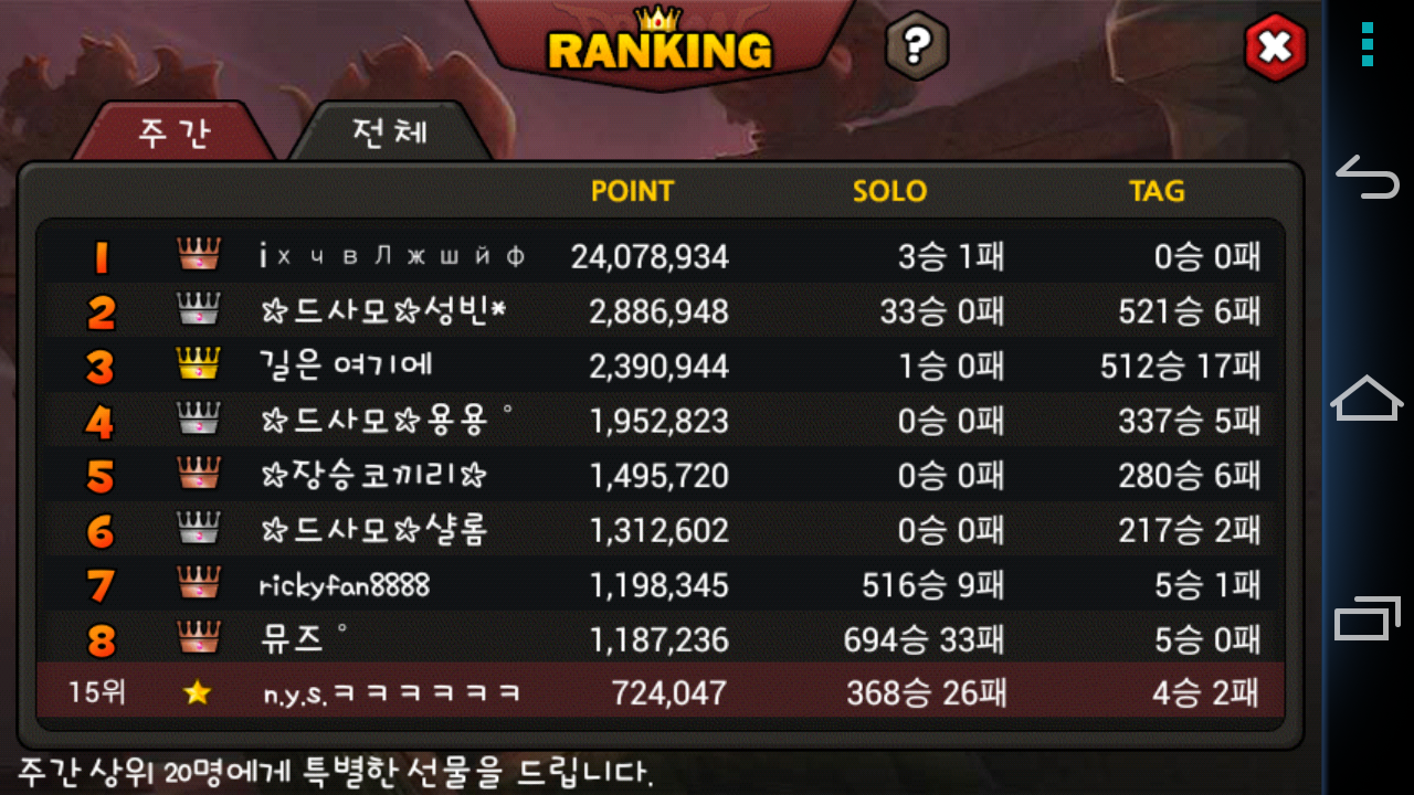 성빈님이1등인데 동관분 뭐지?