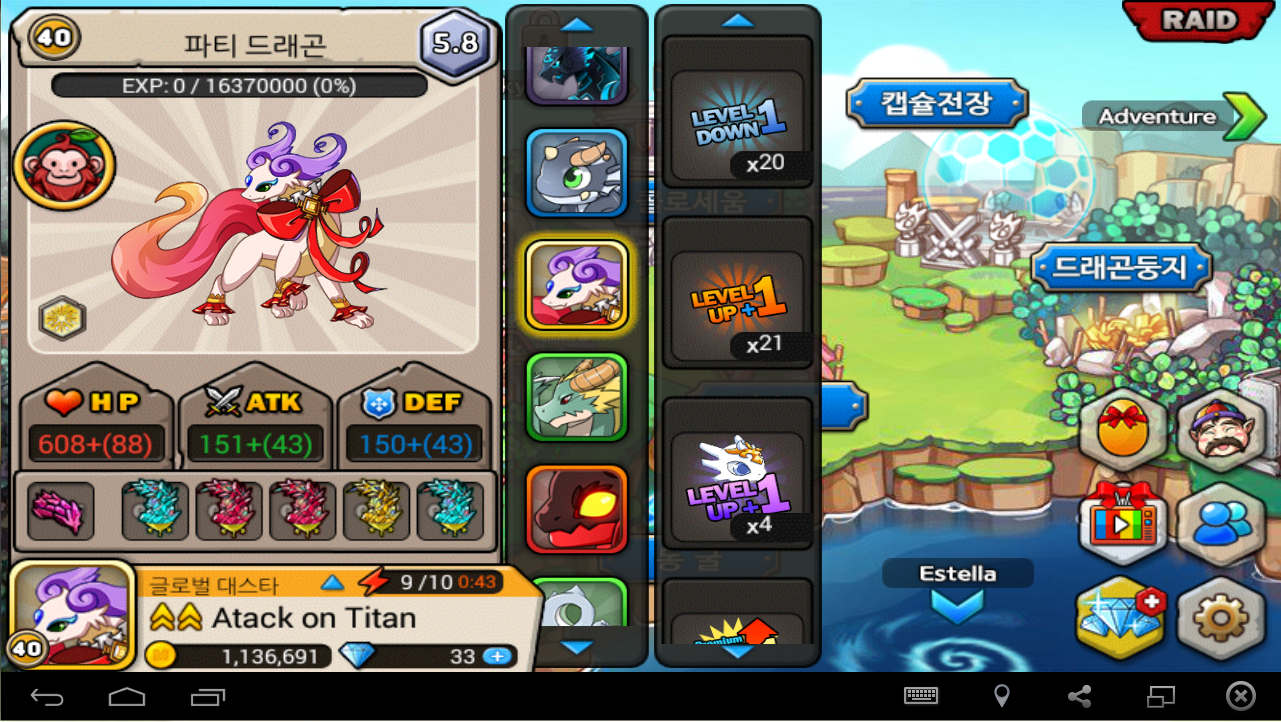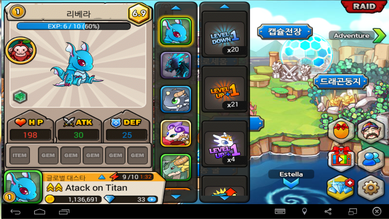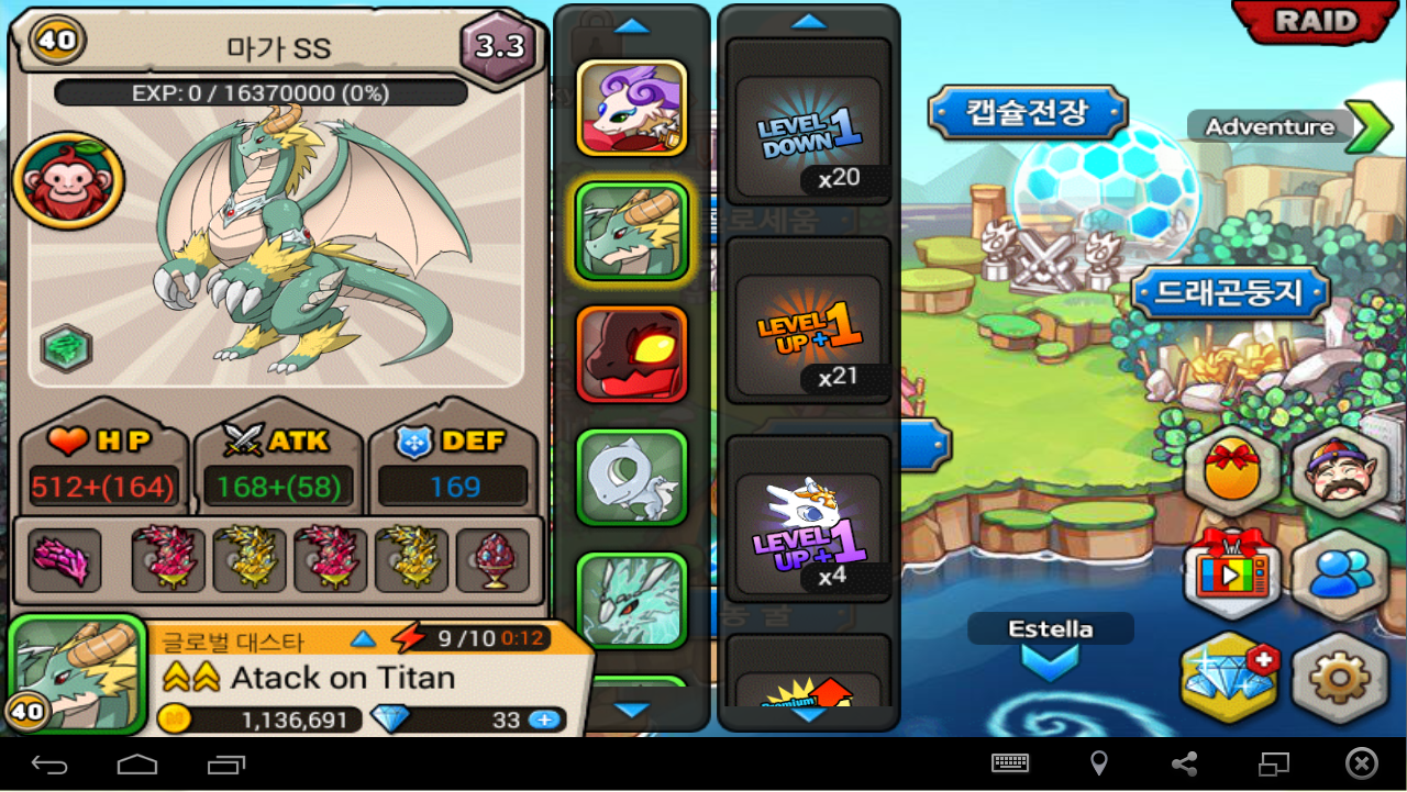 또 키울 아래나용은 지금아래용으로 사나래랑 또 저기 위에 있는 등급유지용들중 하나를 키울것입니다 ㅎㅎ