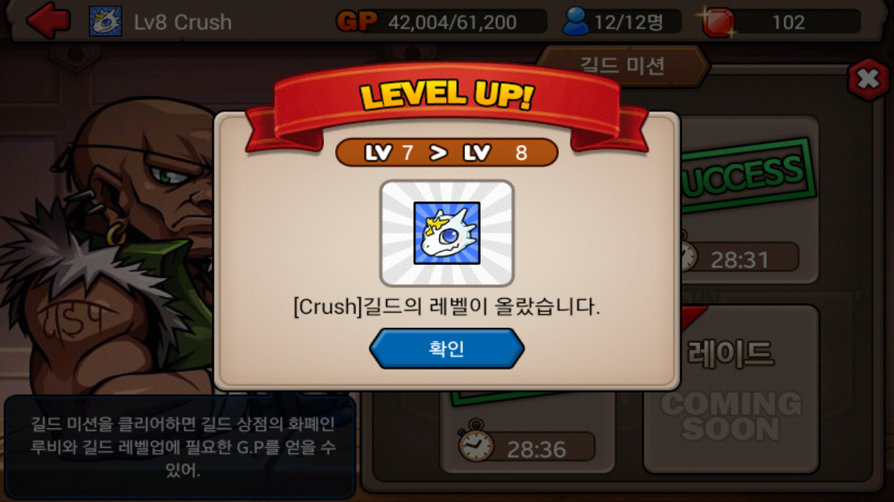 Crush 길드 8렙 달성!