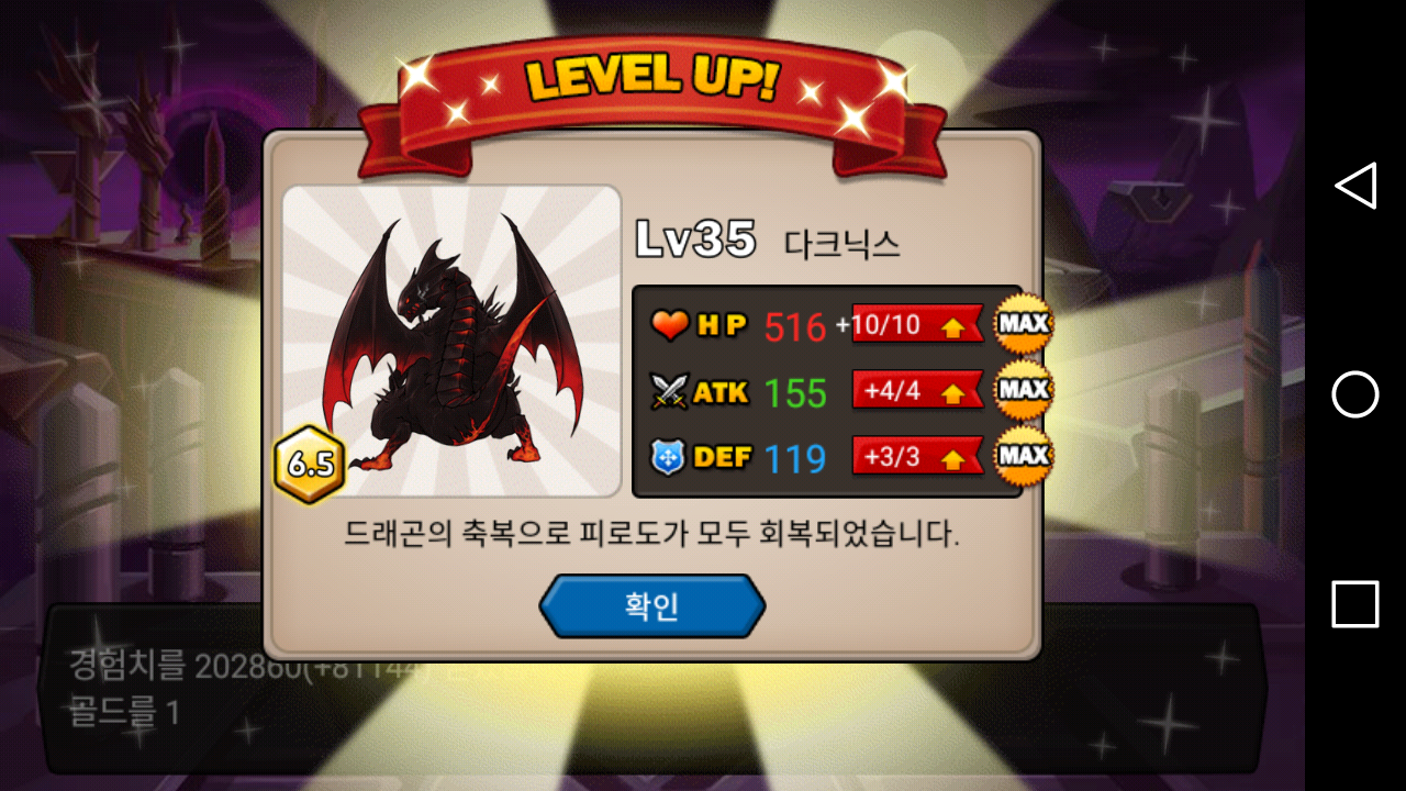 다크닉스 육성4일차만에 풀캡