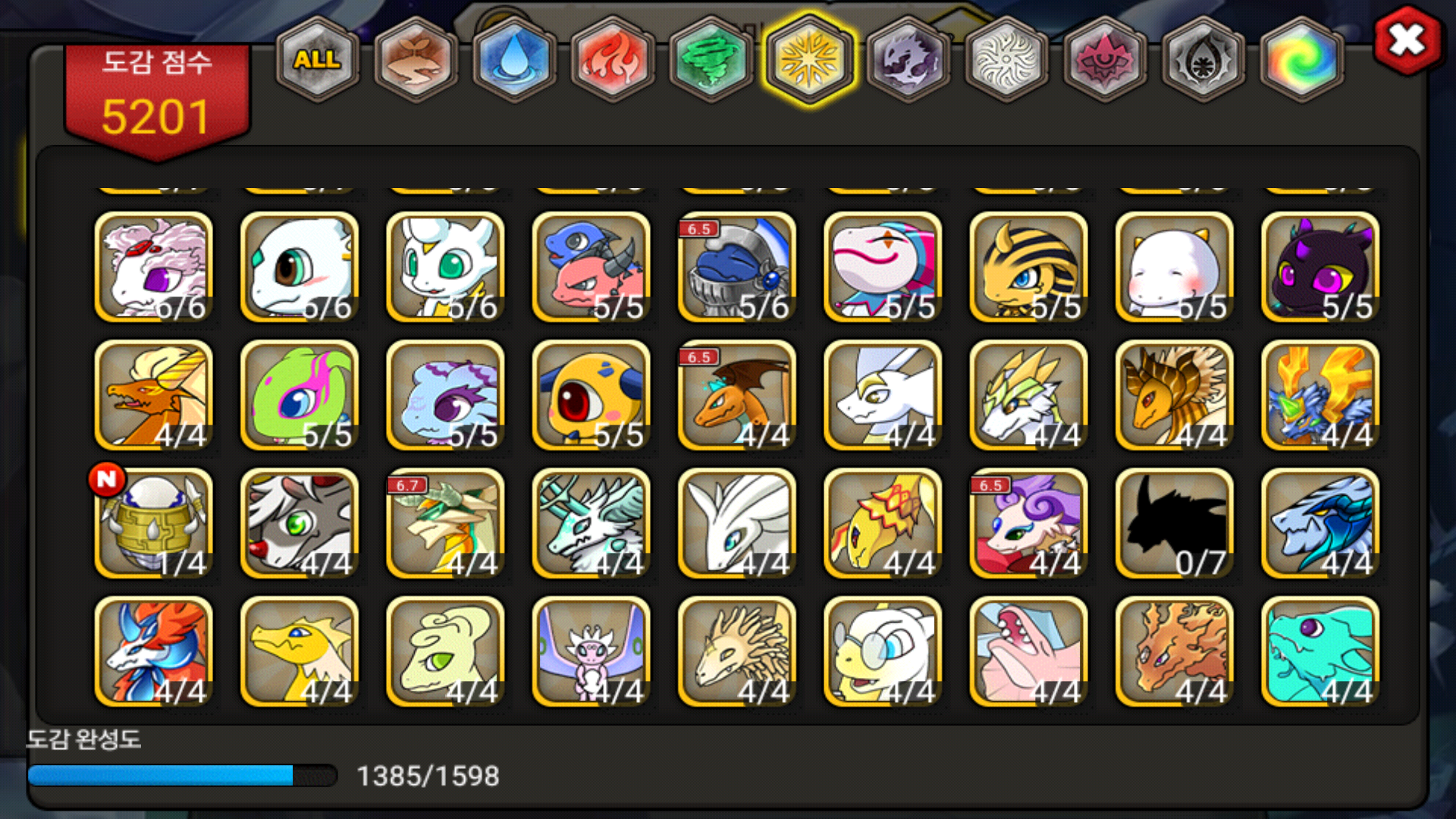 시타엘을 얻으니 빛속성 도감도 다 채웠네요.