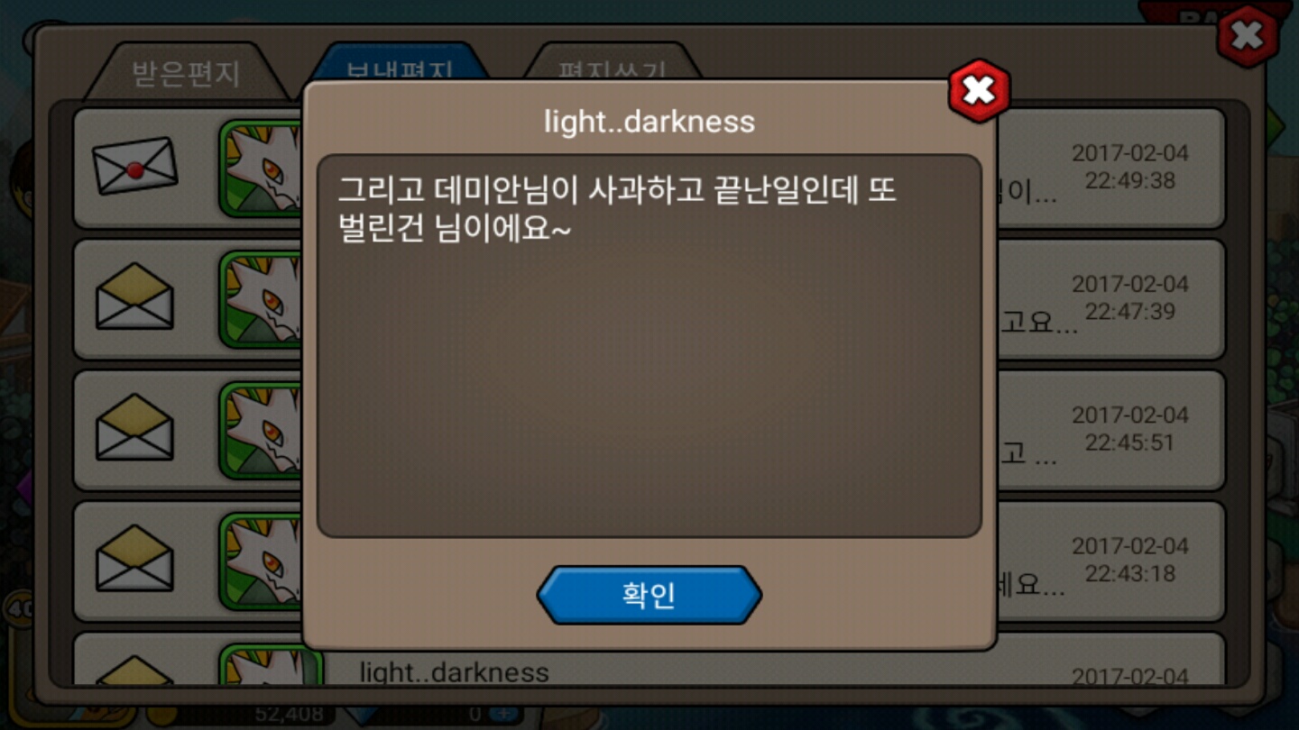 그래서 저는 데미안님이 사칭인걸 인증하고 사과까지 했다는 의미가 담긴 편지를 보냈습니다