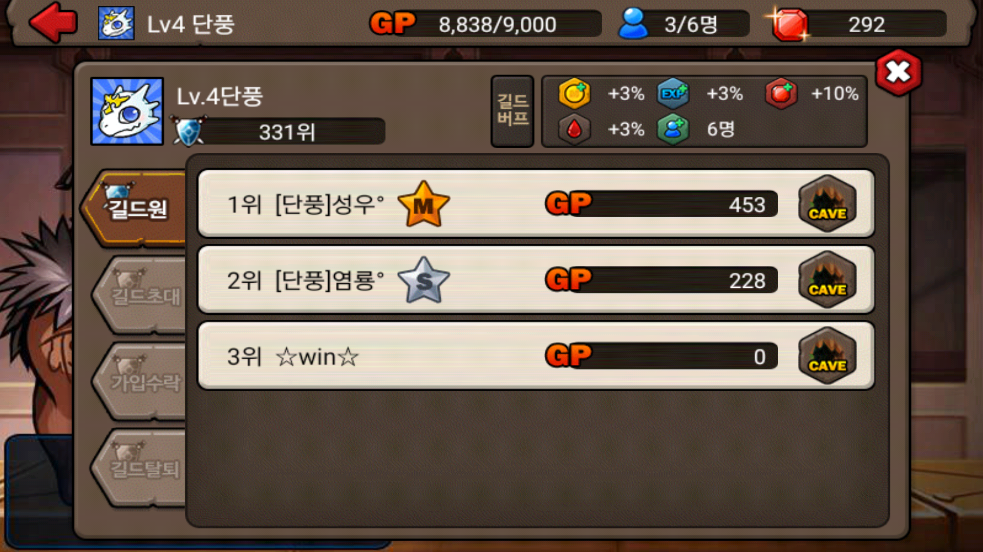 길드이름은 단풍입니다.길드원 조건은 동별 하나 이상 이고요 일주일에 길포300이상 모아주셔야 됩니다.그리고 길드렙이 4렙입니다.들어오시고 싶으신분은 꼭 댓글에 카톡디 달아주시면 감사하겠습니다.(3명구합니다)