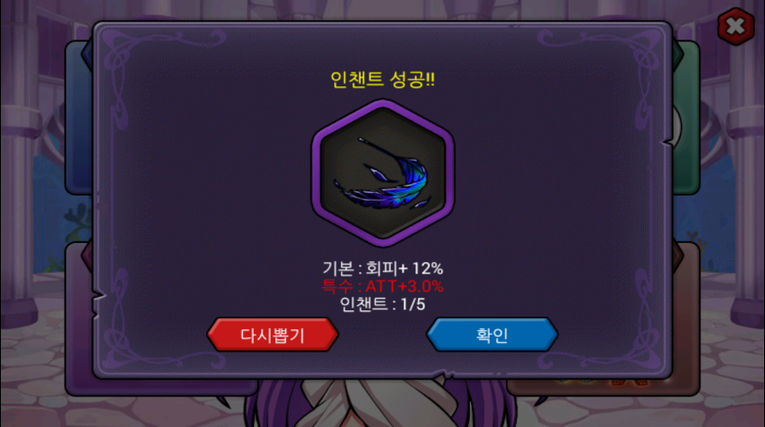 큼 깃털 12퍼도 풀인첸 성공
