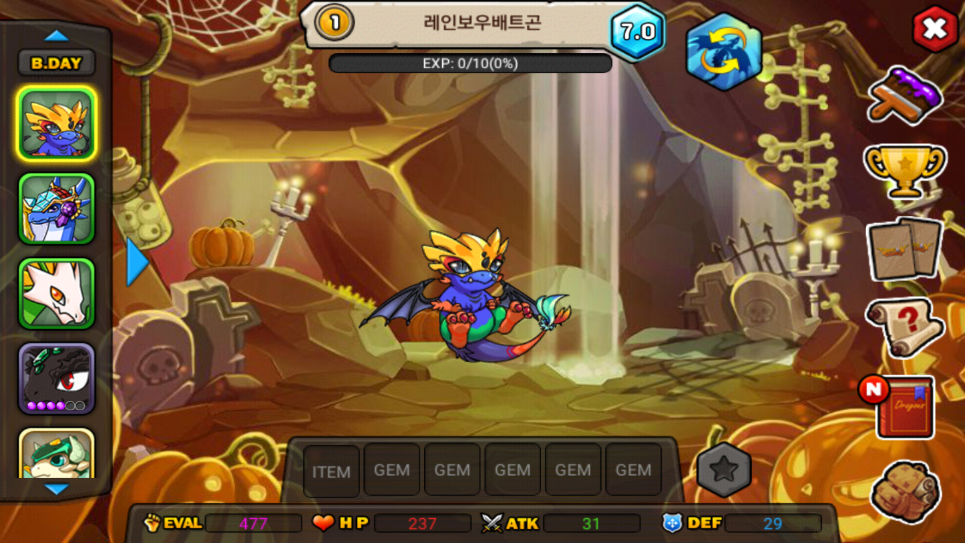 꿈부 한방에 7.0떴네요! 여러번 돌리려고했는데 야호!