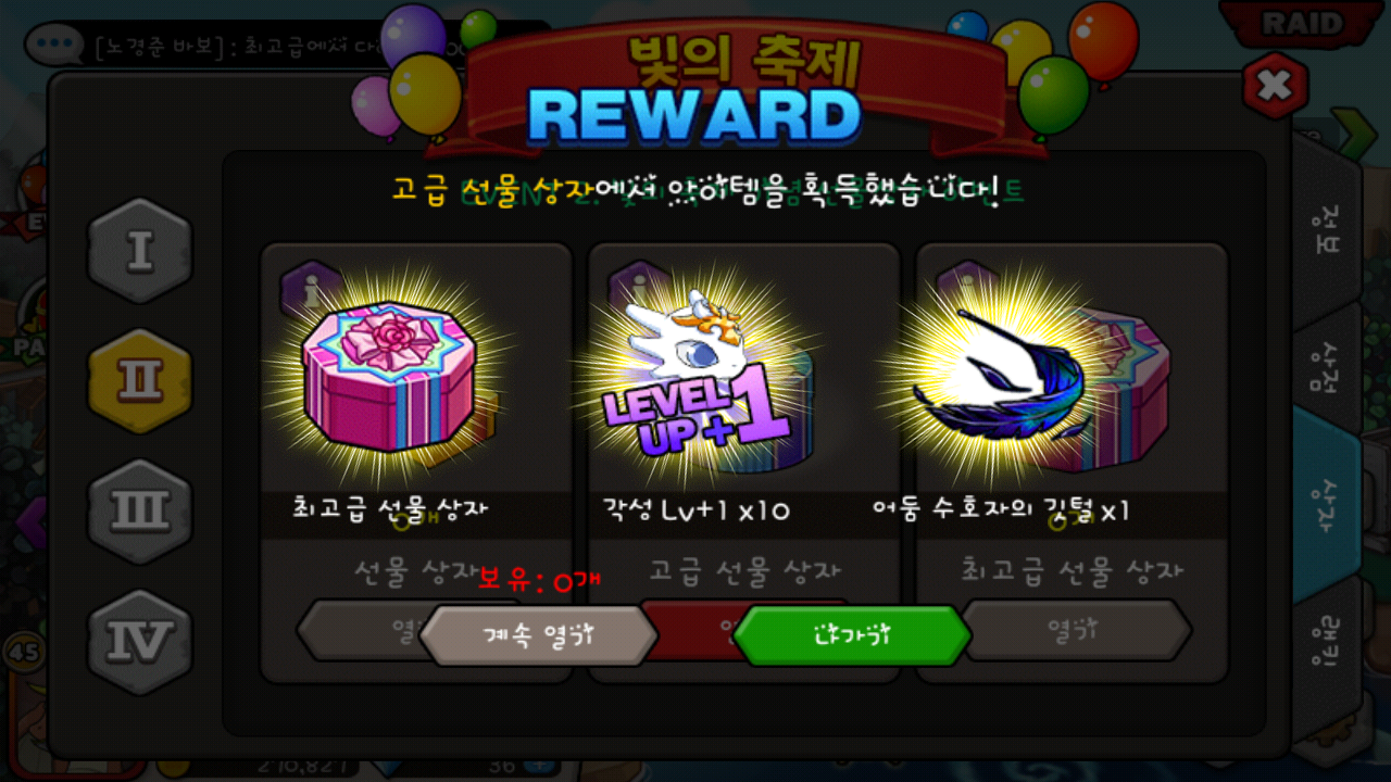 고급에서 최고급이랑 각성렙업×10개랑 어둠 수호자의 깃털나오고