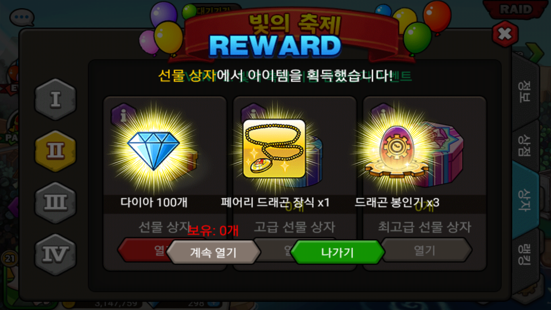 선물상자에서 다야100개떴넹