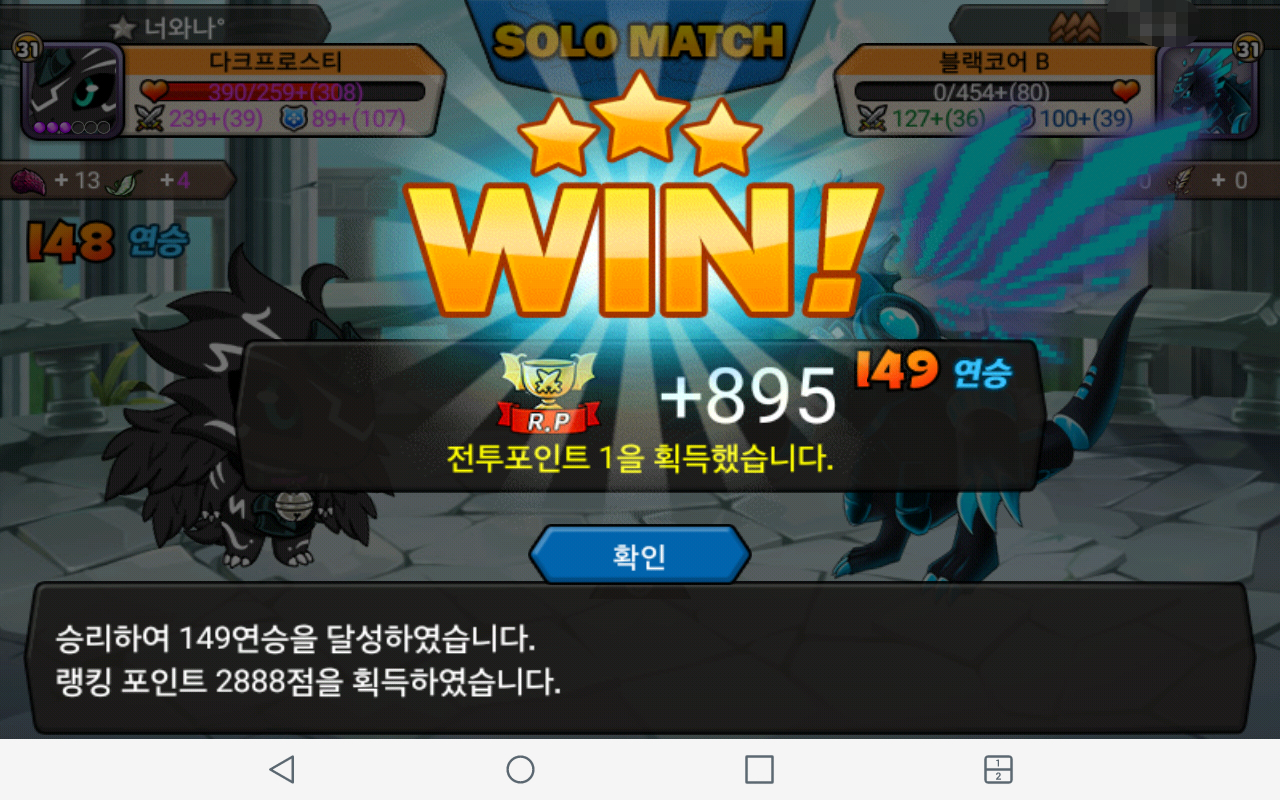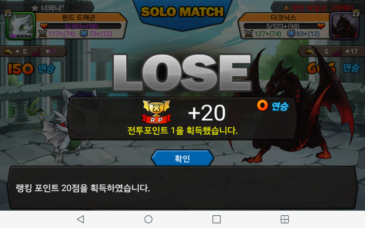 흐어..ㅠㅠ 다이긴건데 마지막 2연속미스 ...흑