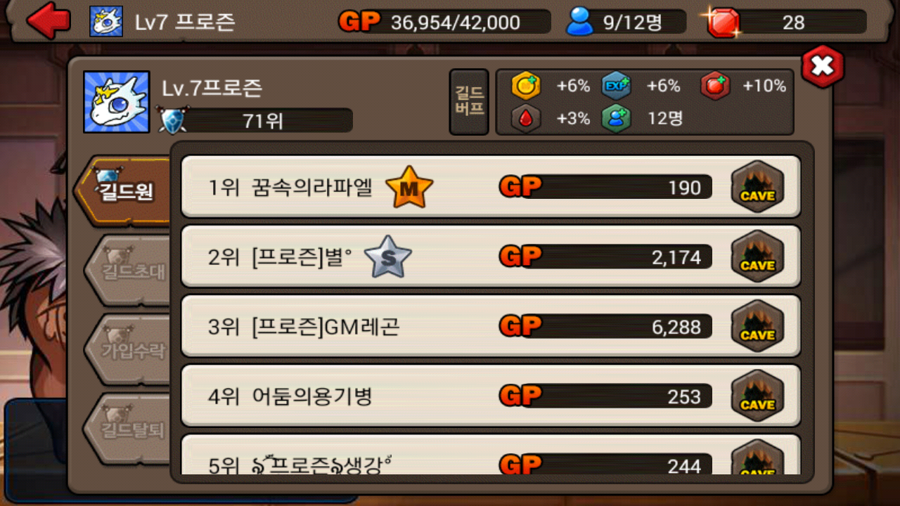 일단 길드는 7렙이고요 톡방도 잇습니다 아직 톡방엔