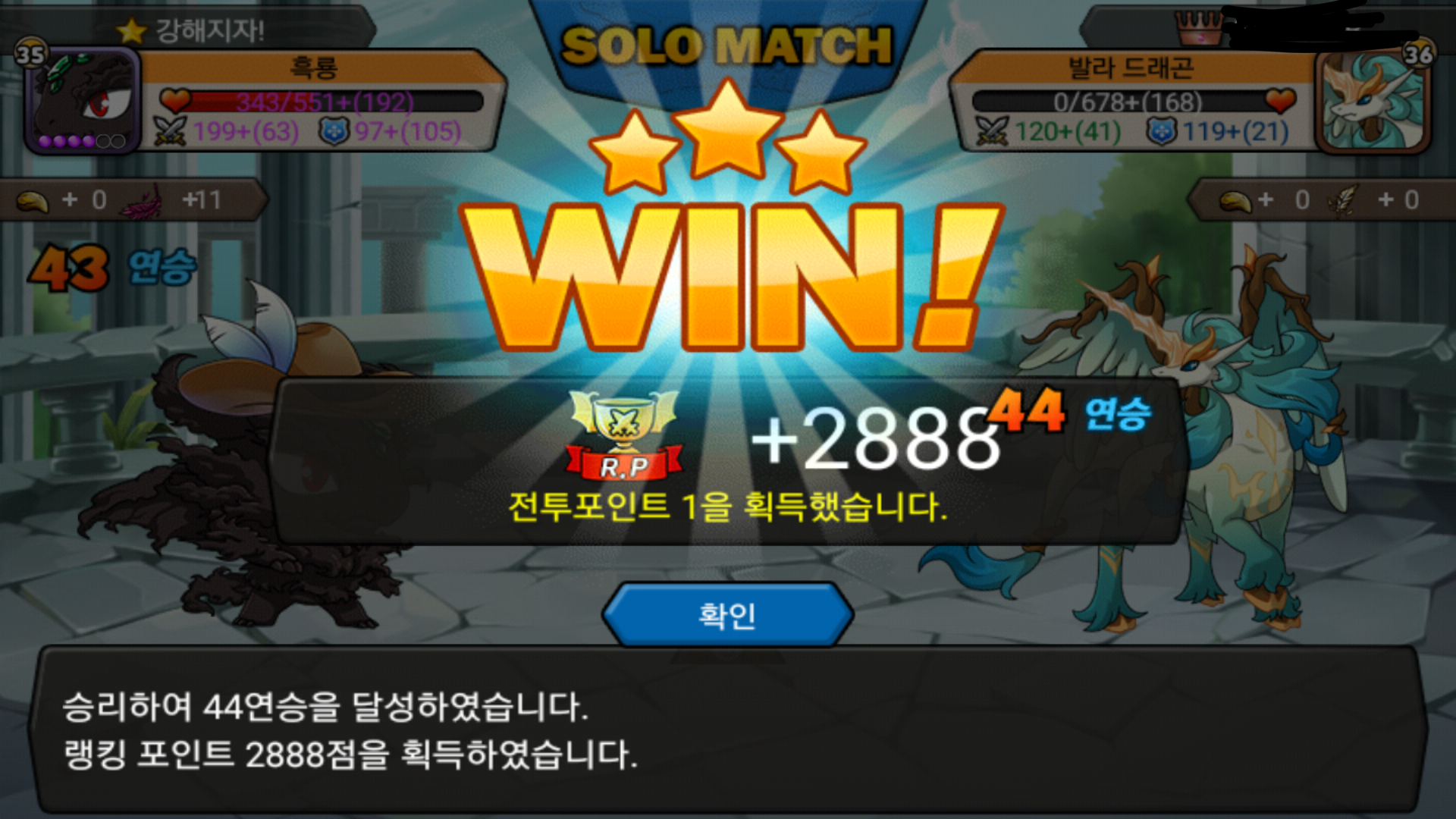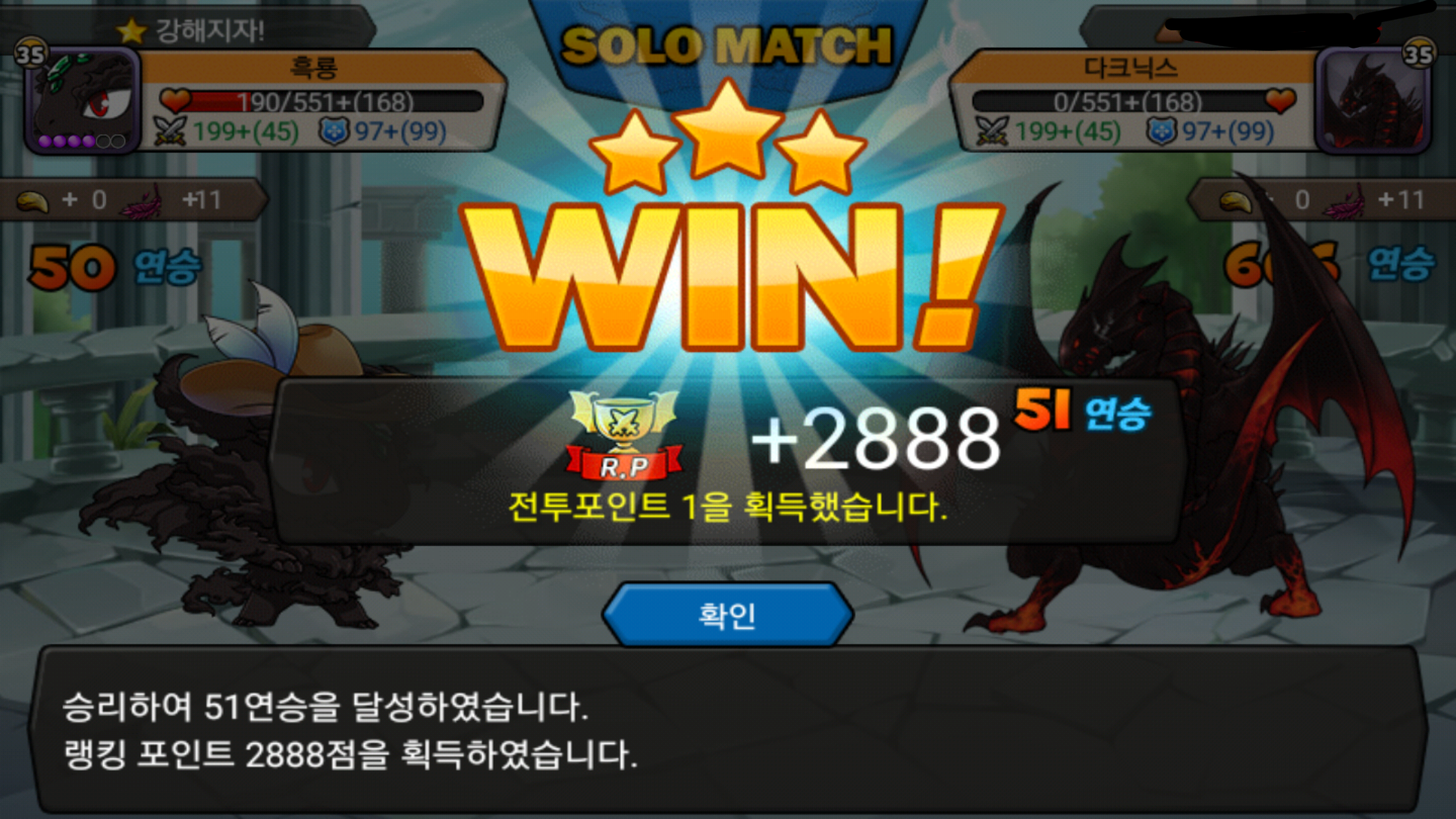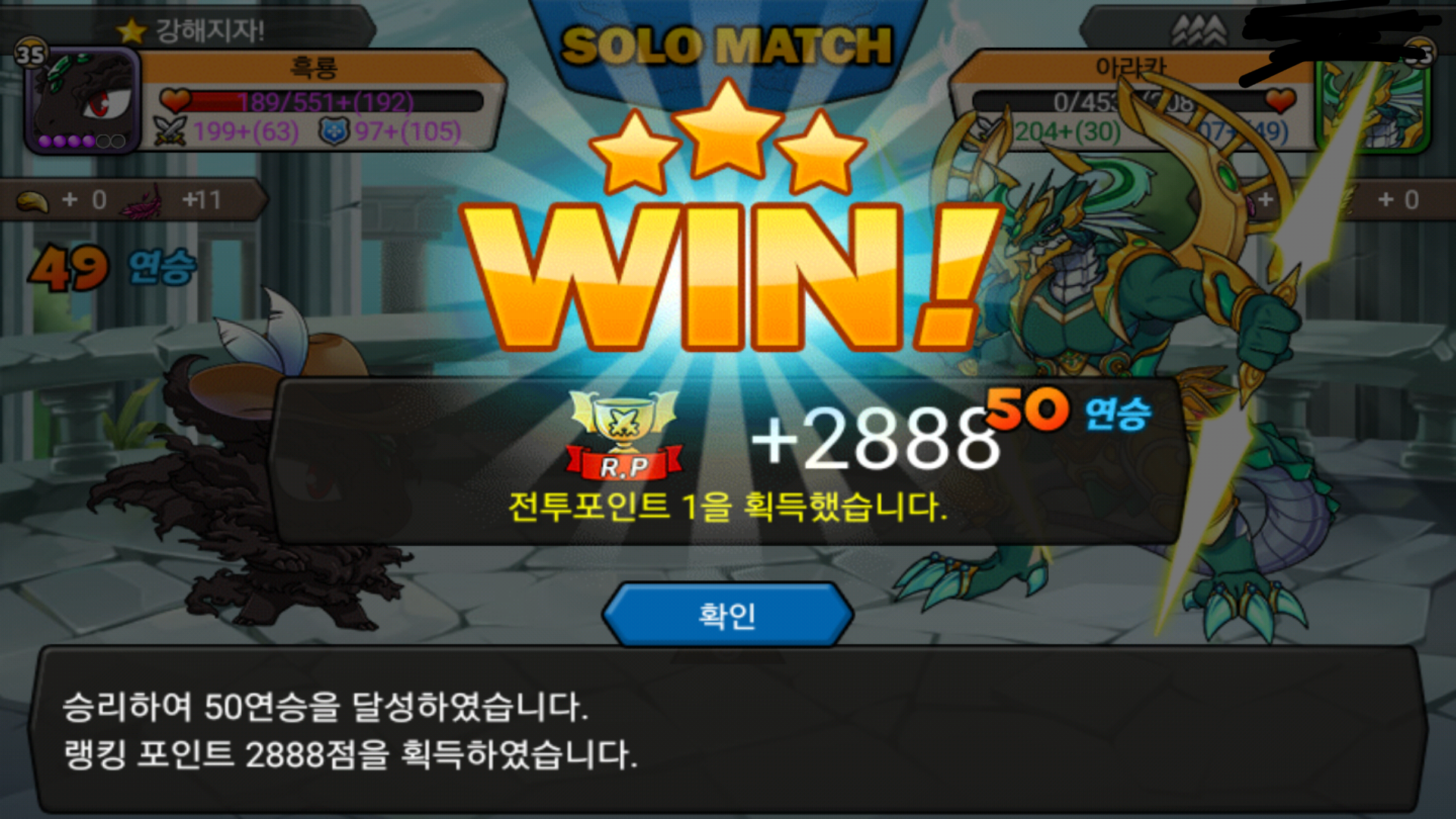 50연승 가던길에 동관님도 잡아봤는데 동관님 드래곤이 심하게 약하시네요;;