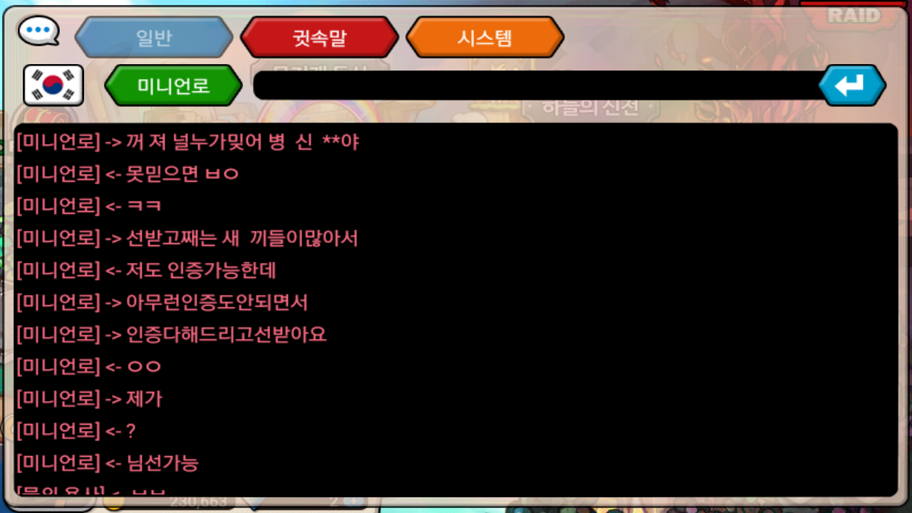 처음보면서 욕까지 하고 반말도 하네요 지금은 저 미니언로님 닉변해서 쿄폔시아로 돼있네요