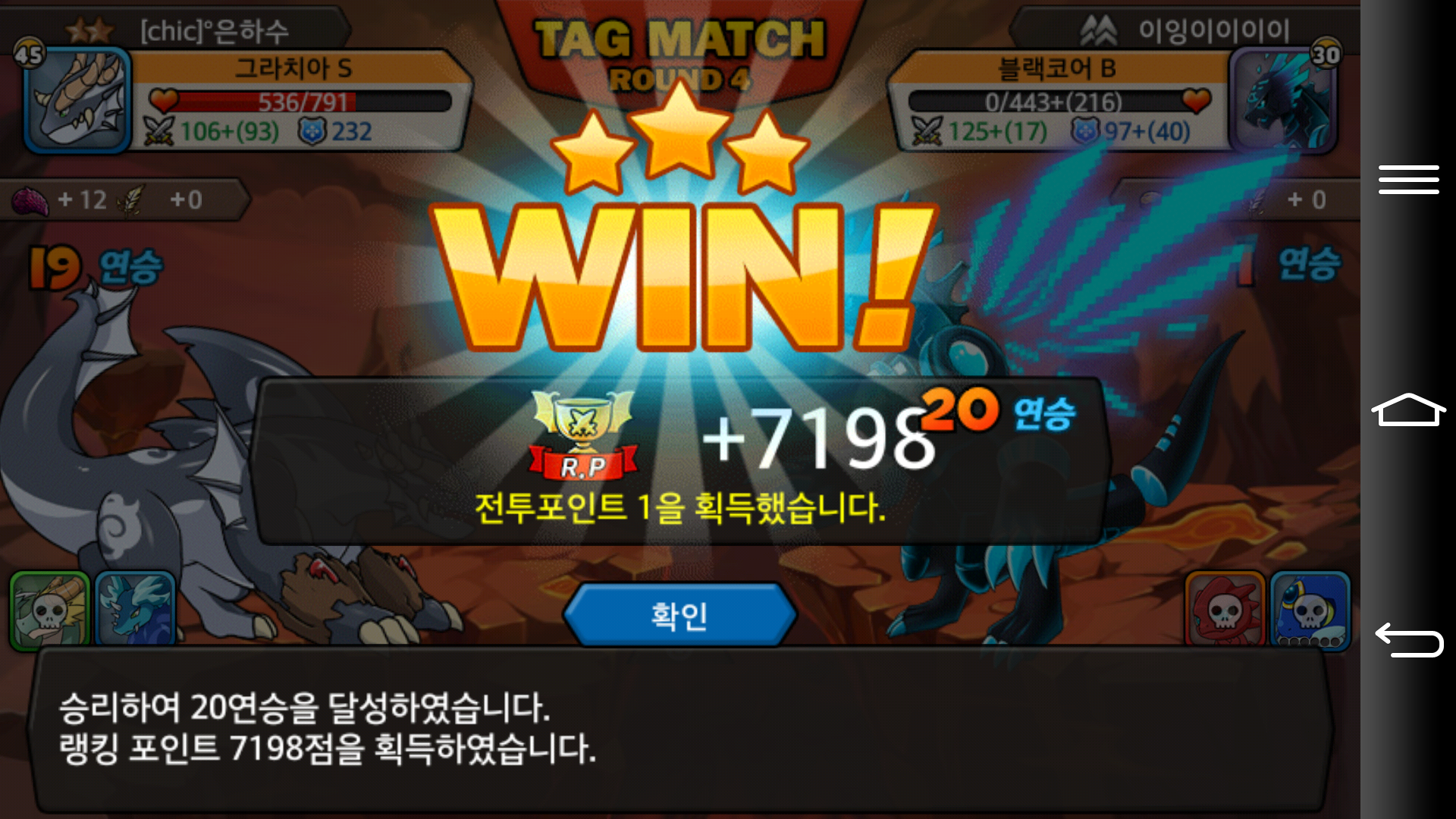 첨으로 태그에서 20연승 가보네요....랭커분들에게는 별거 아니지만.....