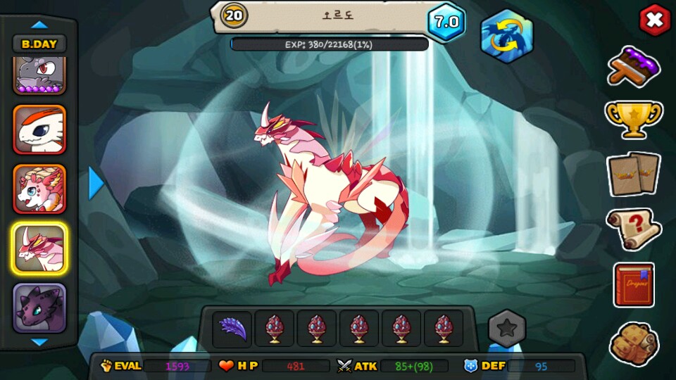 장승님 다음으로 최초인 것 같네요. 7.0까지 부화시키기도 귀찮고... 원랜 데삭하면서 알까기를 하는데...