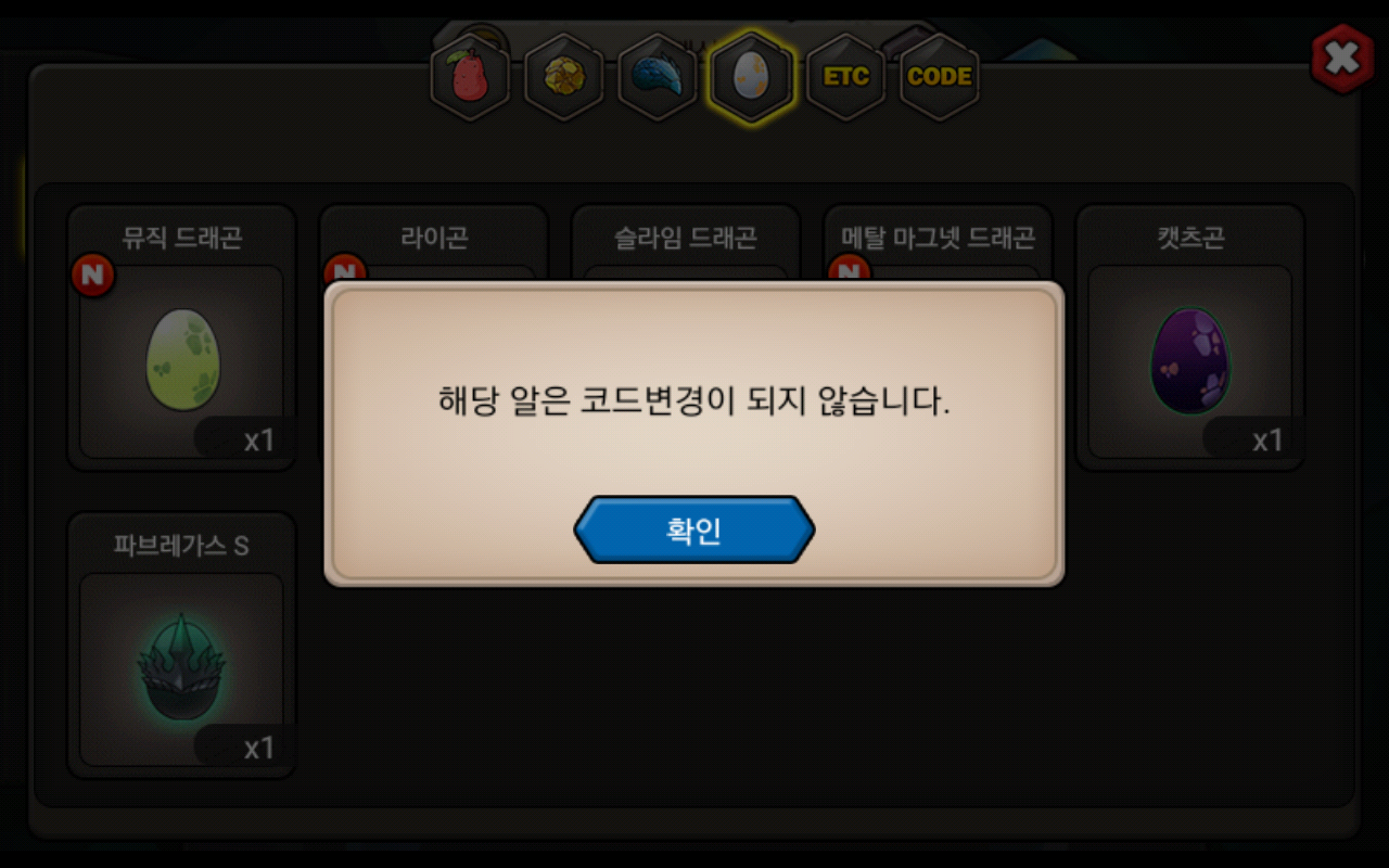 복귀 유저 보상으로 7일째 보상으로 파브레가스S 뽑아서.. 친구한테 주려고 하니깐 코드화가 안되네요.. 이거 패치나 수정 해 주시면 안될까요?