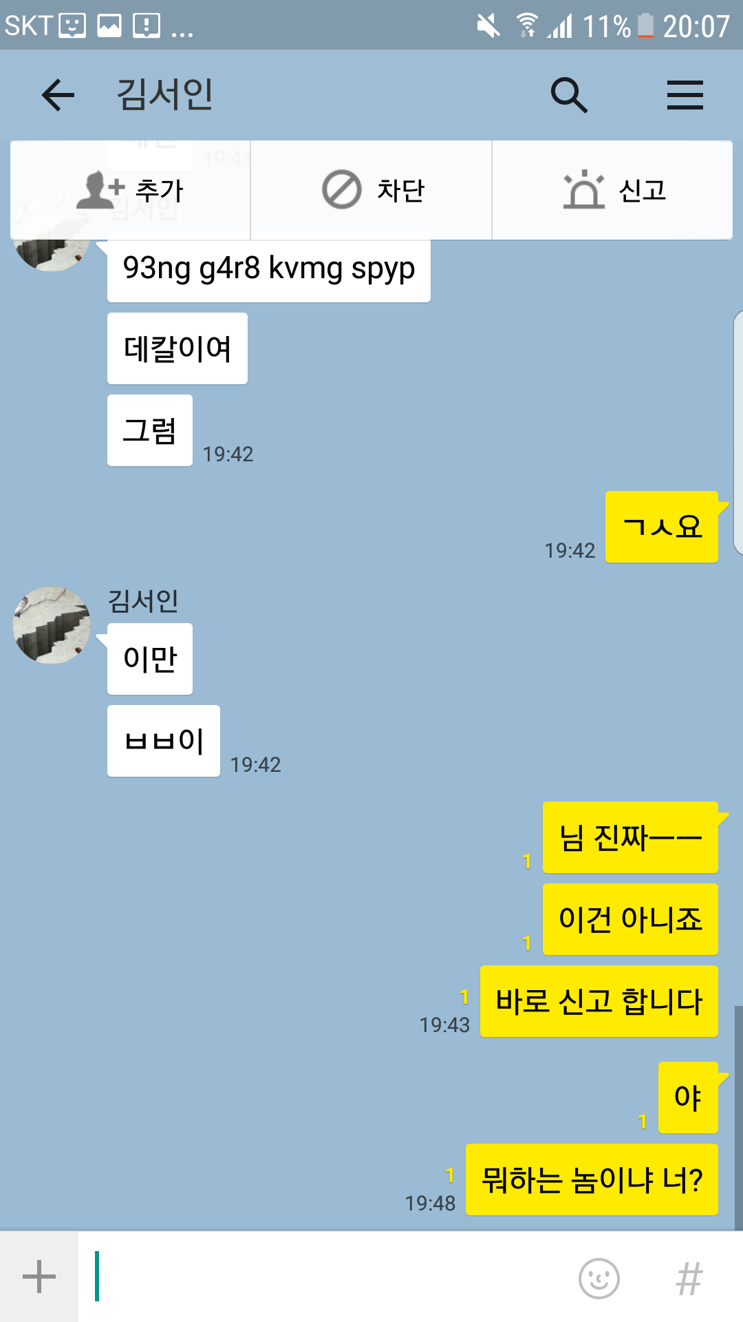 이후에는 다들 예상하시다 싶이 카톡으로 사기당했습니다 코드 사진까지 찍었어야 돼는데 너무 빡치는 바람에 순간적으로 수락해버렸습니다 (그 코드는 고대신룡이였습니다) 그러고 난뒤 톡과 귓말을 계속 보냈고