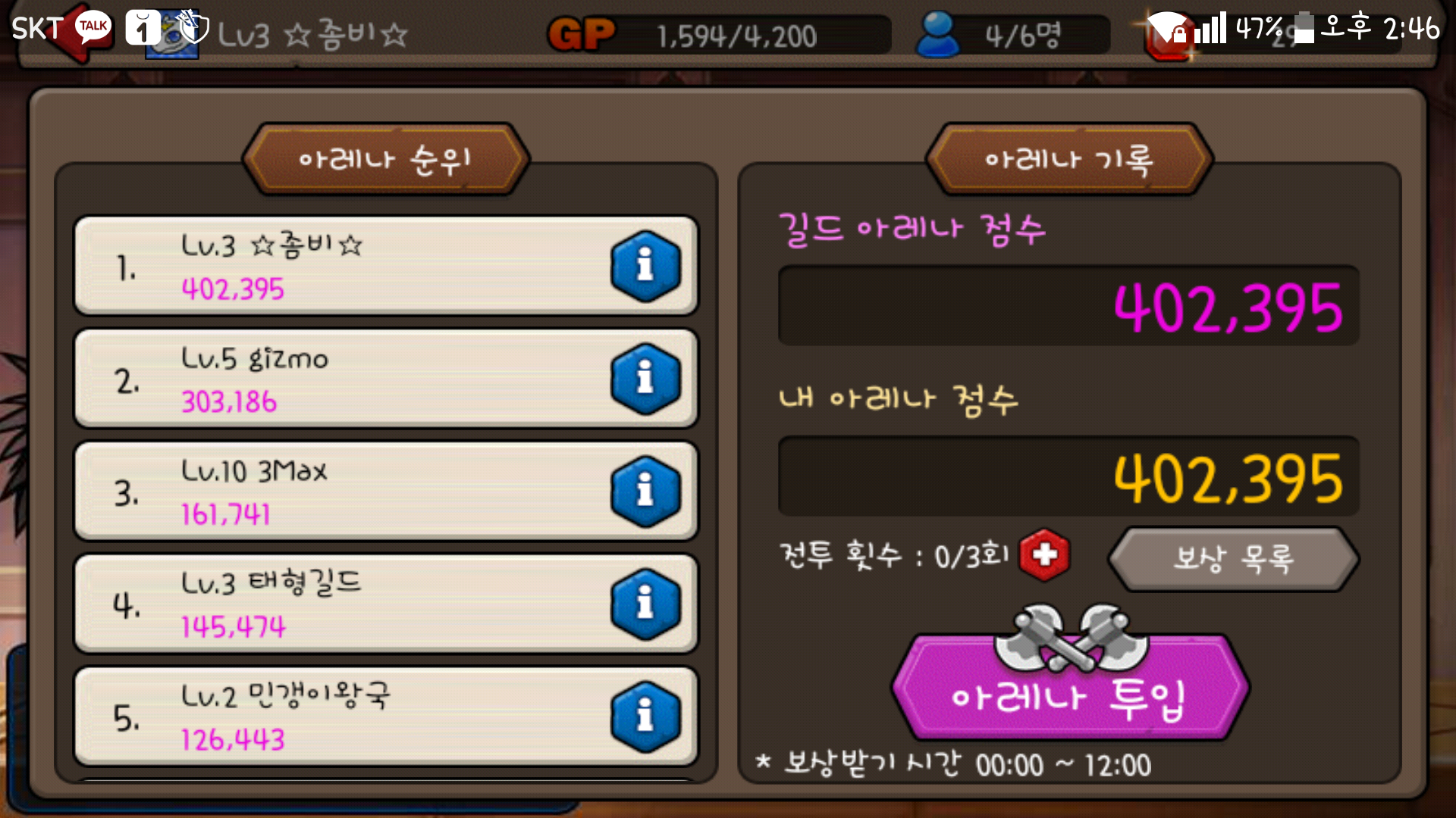 길드아레나 솔플1위 깨지마주세여