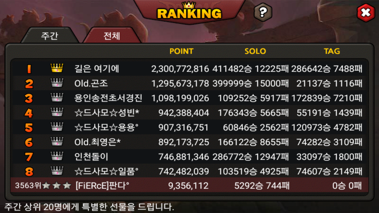3563위를찍었습니다☆☆