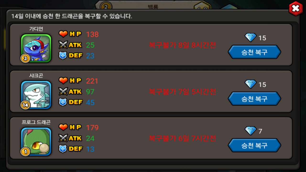 백룡과복구해줘야하는샤콘,가뎐3풀캡