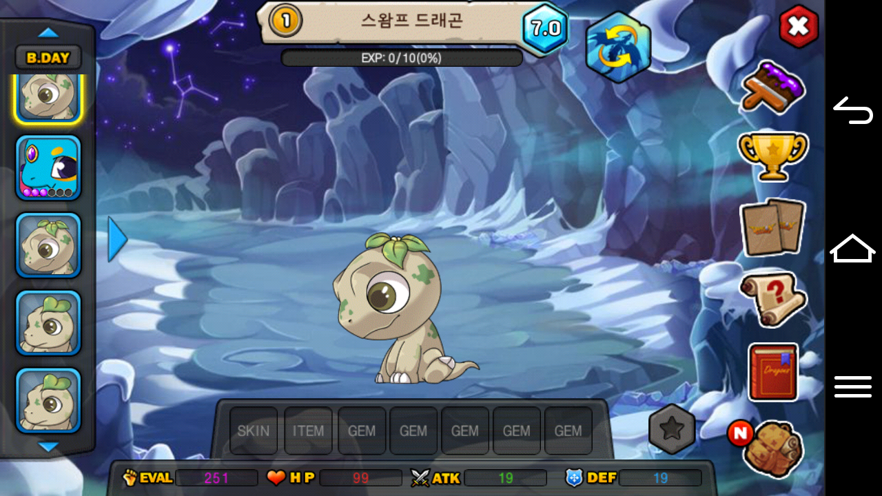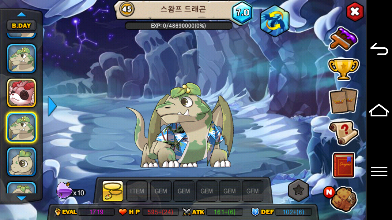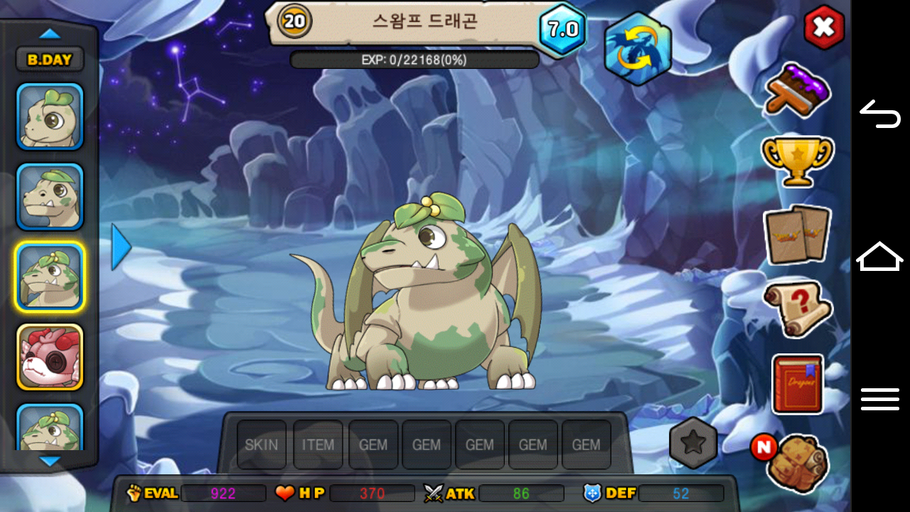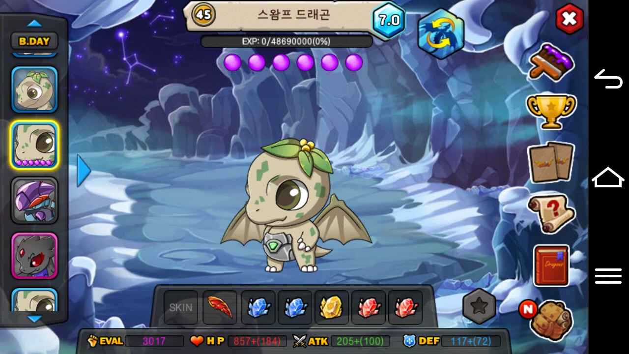전 이제 스왐프 드래곤의 모든 모습을 한번에 제 동굴에 담았고 원할때면 언제나 빠르고 쉽게 반짝이는 7.0등급이 달린 스왐프 드래곤을 볼 수 있습니다.