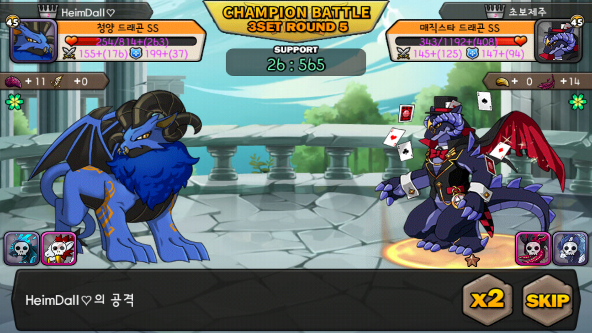 결과를 알고보는거라 긴장감은 전혀 없지만, 청양이 평타딜 50 매직스타가 40정도였으니 충분히 역전이 가능한상황전개 ㅋㅋ