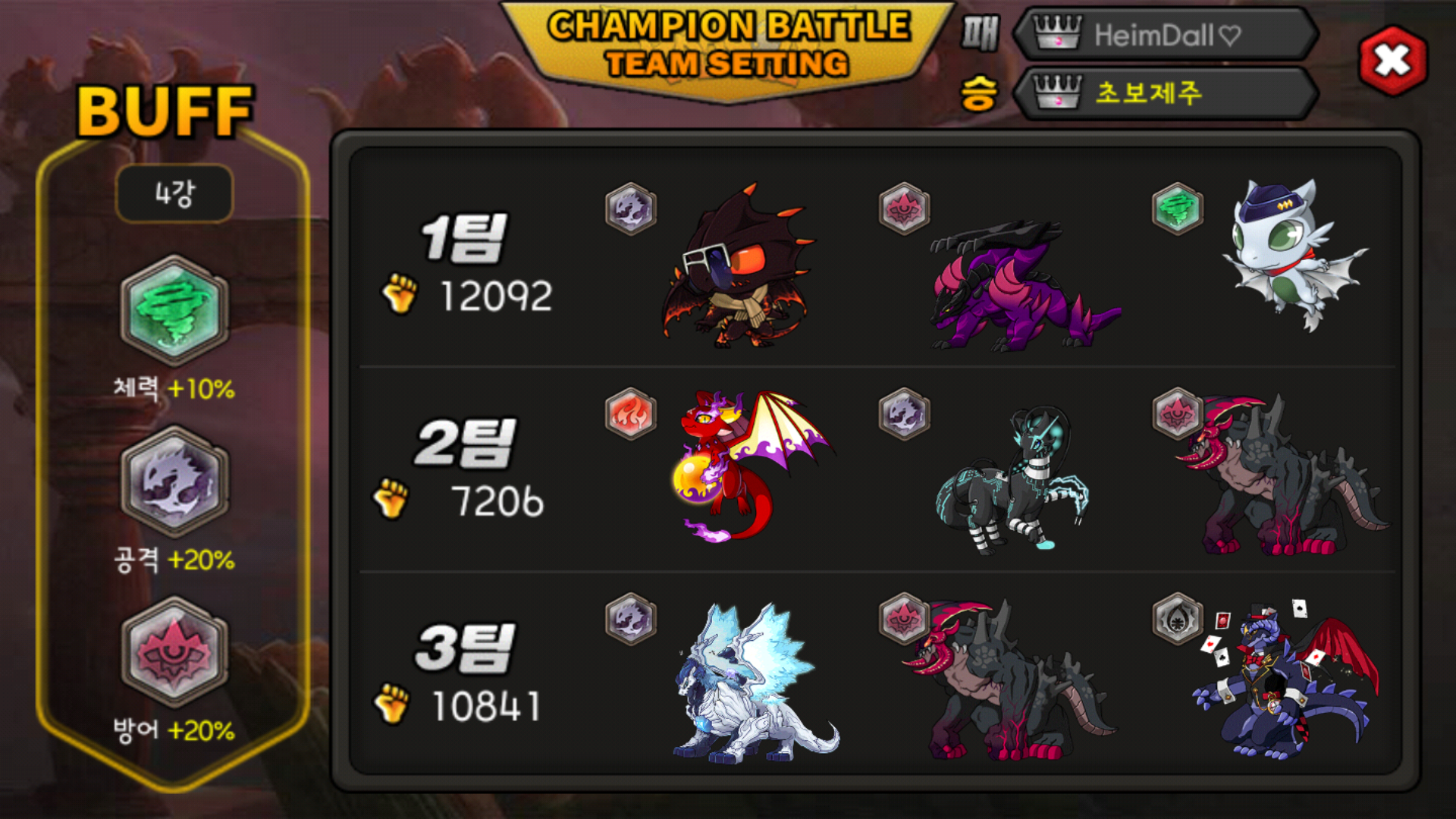 혼자만 즐거운진 모르지만 챔피온전장 개인적으로 참 재미나네요. 좋은 컨텐츠 만들어주셔서, 그리고 오늘 동굴 연결되도록 업뎃되었던데, 지속적인 유저들 의견반영도 감사합니다.