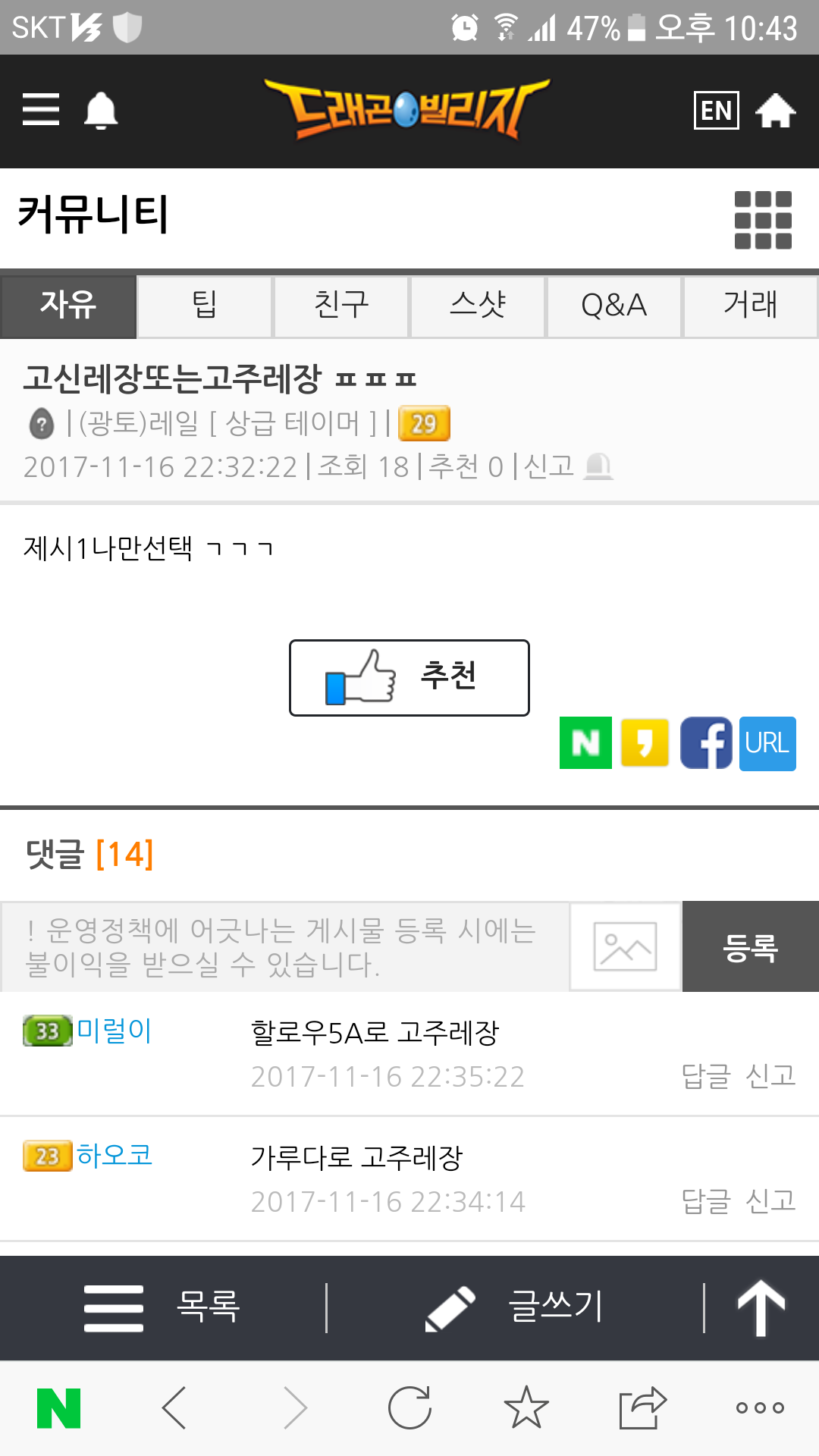 커뮤니티 > 스크린샷