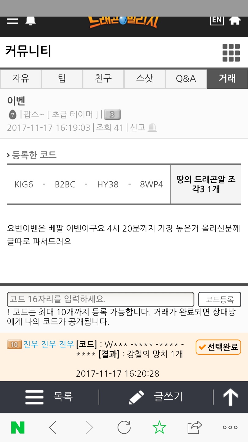 커뮤니티 > 스크린샷