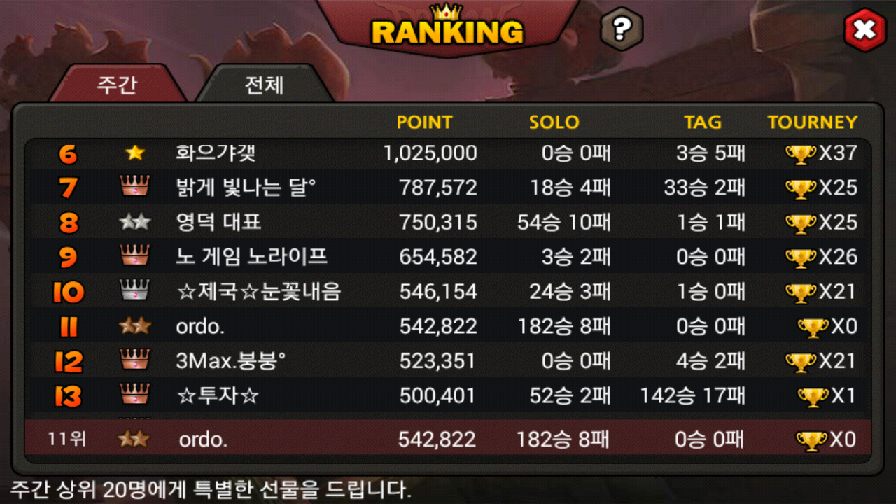 요놈으로만 주랭 11등...!