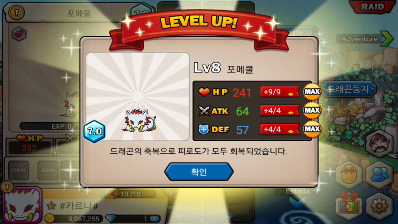 역시 트맥의 힘은 대단해ㅋㅋ 포메쿨 초월시킬꺼예요.. 데헷 레벨 3때 트맥뜬거 못찍었어요..