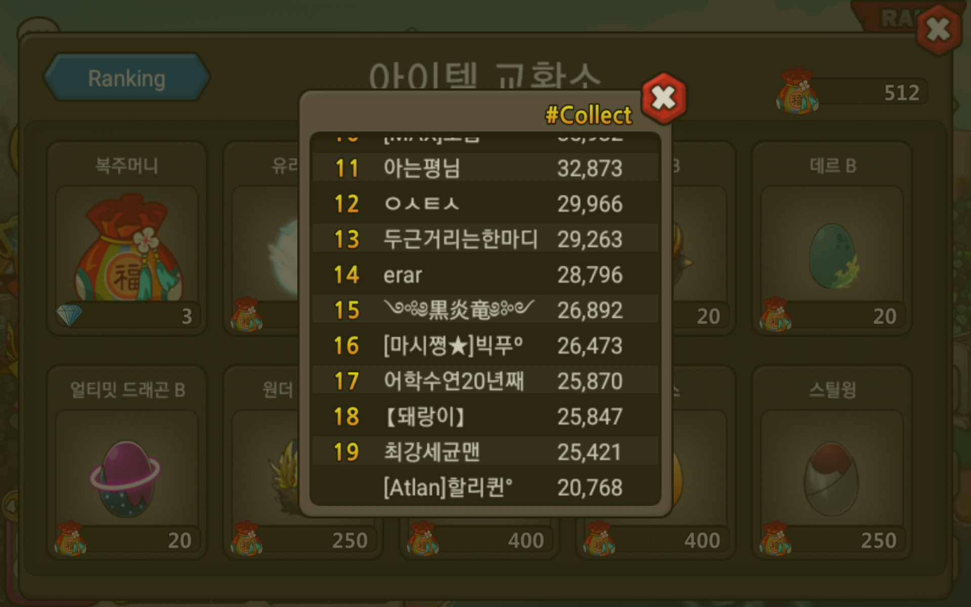 20000개쯤모았습니다. 그런데 제가 유리온sss(8500쯤)사고, 청룡레장, 타아레장한개사고, 물약조금, 그리고 도감용으로 알한개씩샀는데, 들어가보니 400개쯤되어있습니다....
